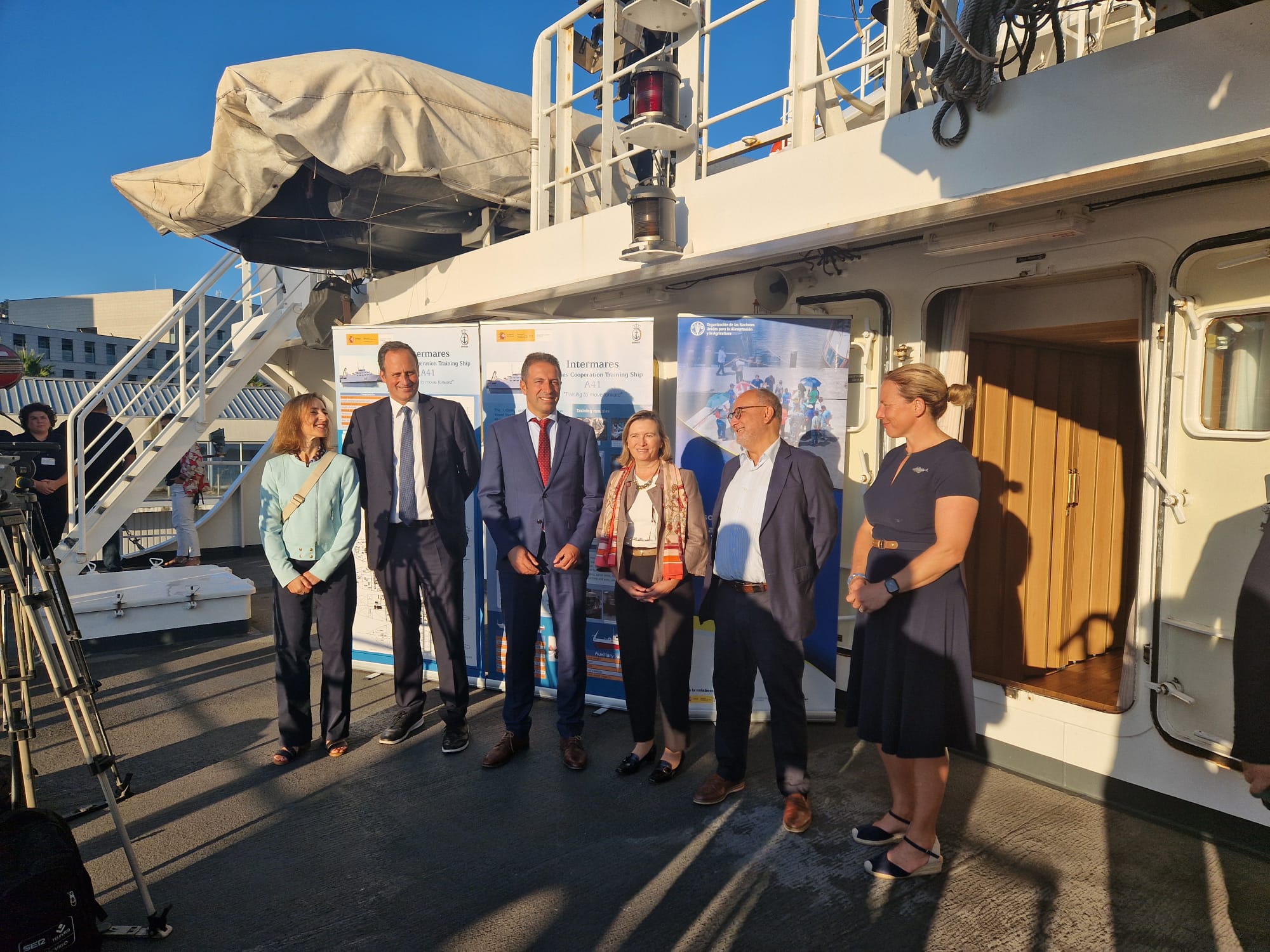 El Ministerio de Agricultura, Pesca y Alimentación y la Organización de Naciones Unidas para la Alimentación y la Agricultura (FAO) organizan desde hoy, y hasta el 27 de septiembre, un curso internacional para formación de inspectores de pesca, que se desarrolla a bordo del buque escuela de cooperación pesquera Intermares, atracado en el Puerto de Vigo.