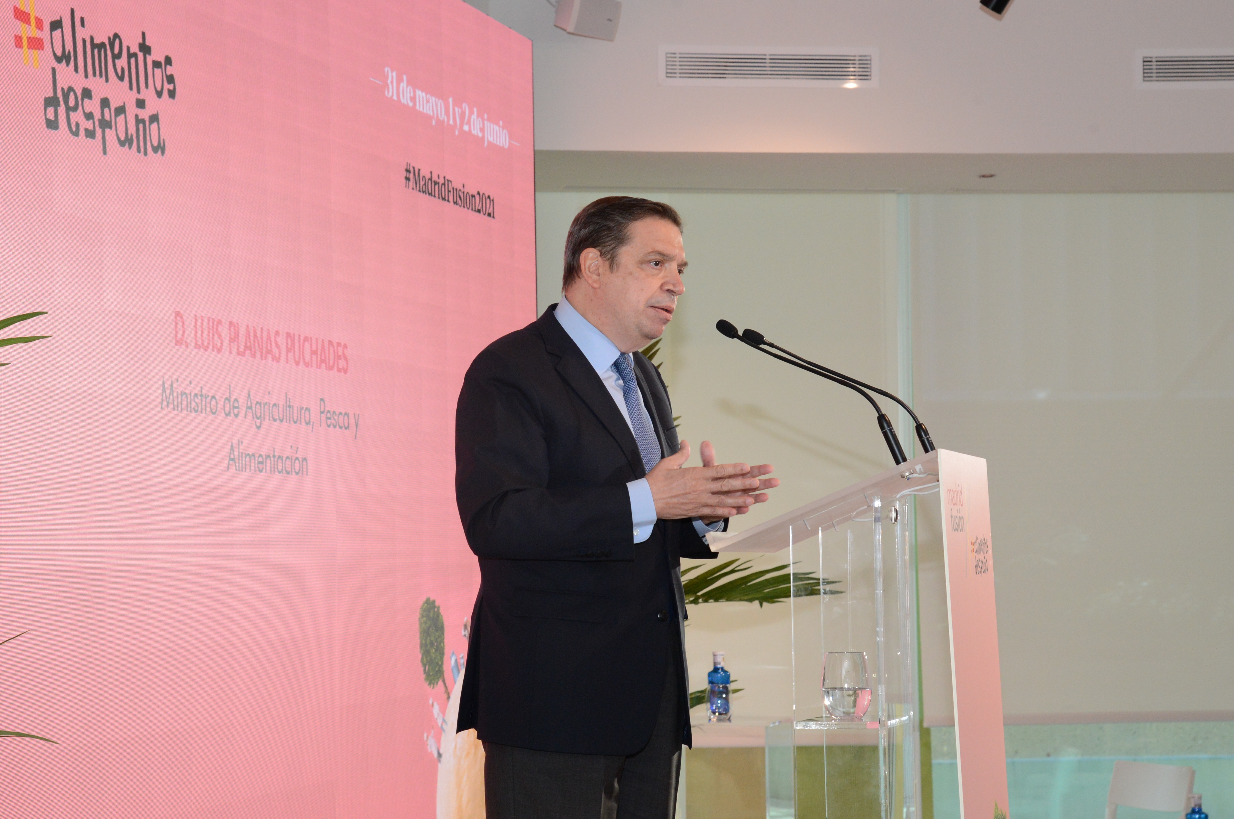 Se trata de la primera edición de este importante certamen internacional en torno a la gastronomía que cuenta con el Ministerio de Agricultura, Pesca y Alimentación como principal patrocinador. A través de ‘Alimentos de España’, el ministerio participará en las próximas tres ediciones de este congreso con el fin de reforzar su estrategia de aceptación, visibilidad y conocimiento de la industria agroalimentaria y de la gastronomía nacional. En esta línea, el Ministerio de Agricultura, Pesca y Alimentación ha creado un nuevo premio que, bajo el epígrafe ‘Alimentos de España-Madrid Fusión’, servirá de reconocimiento al restaurante que ofrezca el menú más enraizado en las tradiciones culinarias españolas o que haga mejor uso de los productos locales. La entrega de este primer galardón dirigido a la promoción de los productos y gastronomía nacionales tendrá lugar a lo largo de la celebración del evento. Luis Planas ha destacado tres aspectos que afectan a todo el sector agroalimentario y que se van a abordar en la celebración de Madrid Fusión-Alimentos de España. “En primer lugar”, ha dicho el ministro, “el carácter saludable de nuestros productos, ya que la dieta mediterránea significa productos frescos y de proximidad que proporcionan salud a quien los consumo”. En segundo lugar, ha añadido Planas, “la sostenibilidad y el concepto de economía circular que enmarca esta edición del evento Madrid Fusión y que sintoniza plenamente con las intenciones del Gobierno, incluida la tramitación de una ley, para hacer frente al desperdicio alimentario”. Y, en tercer lugar, el ministro se ha referido a la innovación y digitalización como un elemento clave para el desarrollo y evolución del sector agroalimentario español. Luis Planas también ha hecho referencia a la entrada de España en una etapa de recuperación económica y de creación de economía y empleo. “Y Madrid-Fusión -ha dicho el ministro Planas-, viene muy oportunamente a situarse en esa visión positiva y optimista del futuro para el que tenemos que trabajar todos juntos”. GASTRONOMÍA CIRCULAR El ministro también ha hecho alusión a las fórmulas de adaptación del sector hostelero, durante los peores meses de la pandemia, que han acelerado o generado nuevos hábitos y modelos económicos tanto en la producción, como en la logística y el consumo de alimentos. Luis Planas se ha referido al consumo de alimentos y a la gastronomía como herramientas para cambiar el mundo. De hecho, las mesas redondas y actividades en las que el ministerio va a participar durante la celebración de ‘Madrid Fusión-Alimentos de España’ están enfocadas a la transformación hacia una economía circular. El estímulo de la agricultura local, el refuerzo de los circuitos cortos, el consumo de productos de temporada o la cultura del aprovechamiento frente al desperdicio son algunos de los temas que se van a abordar en estas actividades dirigidas a explorar las perspectivas de futuro en la producción, elaboración y consumo de los alimentos. En cuanto al futuro del sector agroalimentario y hostelero, los consumidores, cada vez más informados y concernidos por los problemas que implica el cambio climático, demandan productos alimentarios saludables y sostenibles. Son importantes pistas para la orientación del desarrollo de negocios y emprendimiento en este sector. La XIX edición del certamen Madrid Fusión, que estrena el apellido Alimentos de España, también presentará como novedad su celebración, de forma simultánea, en formato presencial y digital. Este hecho lo convierten en el primer congreso global de gastronomía del mundo.