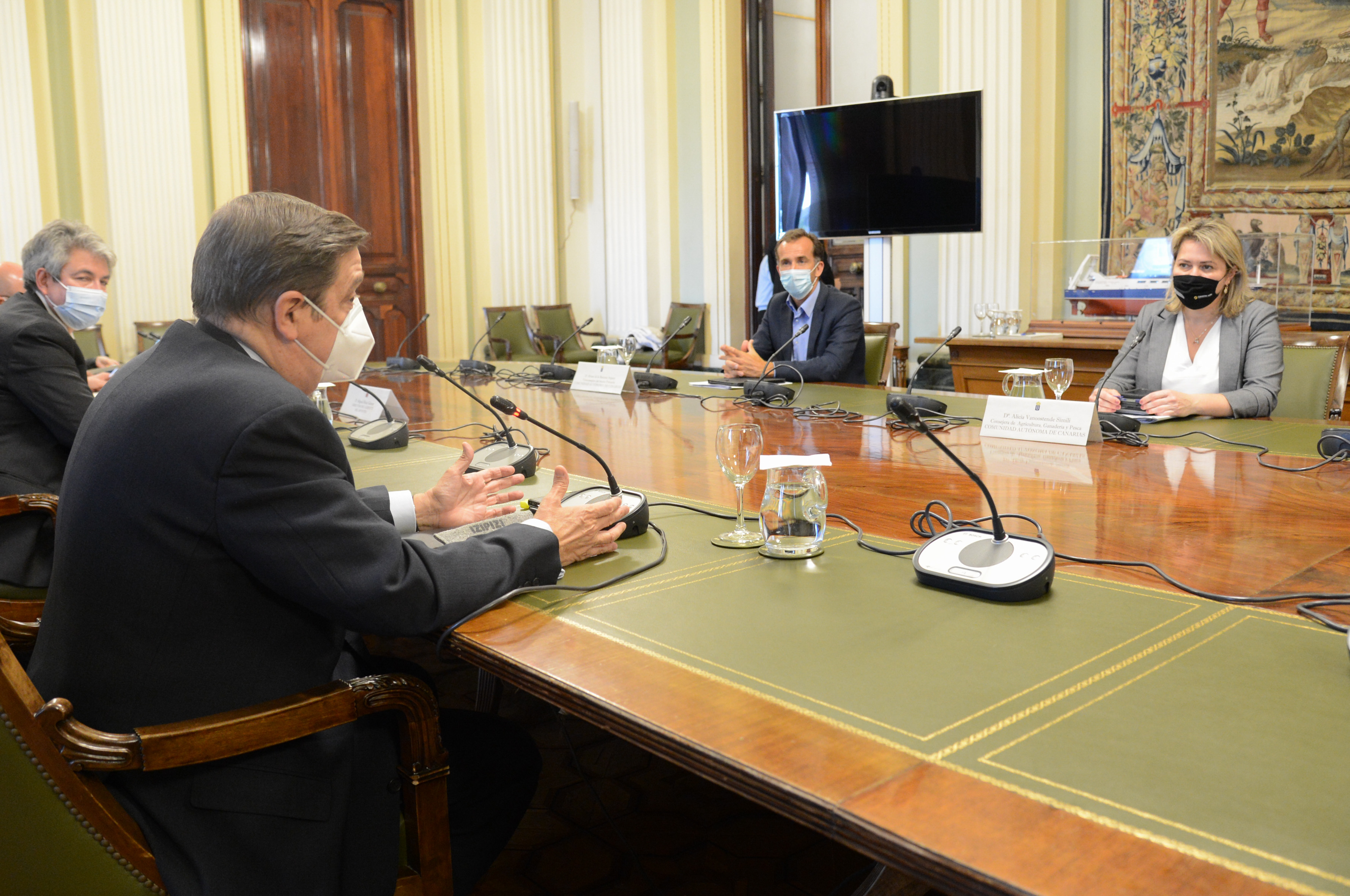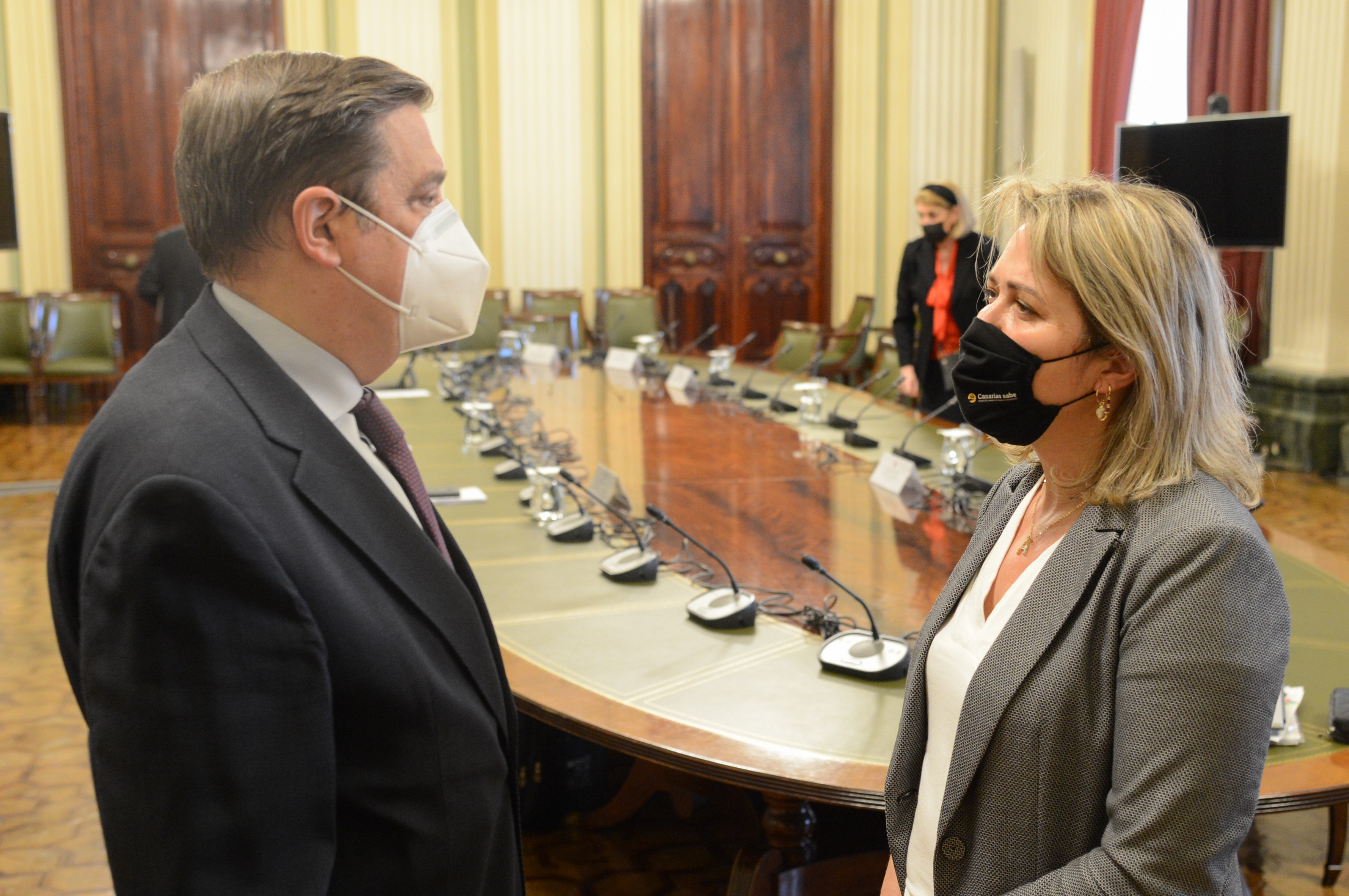 El ministro de Agricultura, Pesca y Alimentación, Luis Planas, se ha reunido hoy, en la sede del ministerio, con la consejera de Agricultura, Ganadería y Pesca, del Gobierno de Canarias, Alicia Vanoostende, en la que han analizado las propuestas de esta comunidad autónoma para la futura Política Agraria Común (PAC).