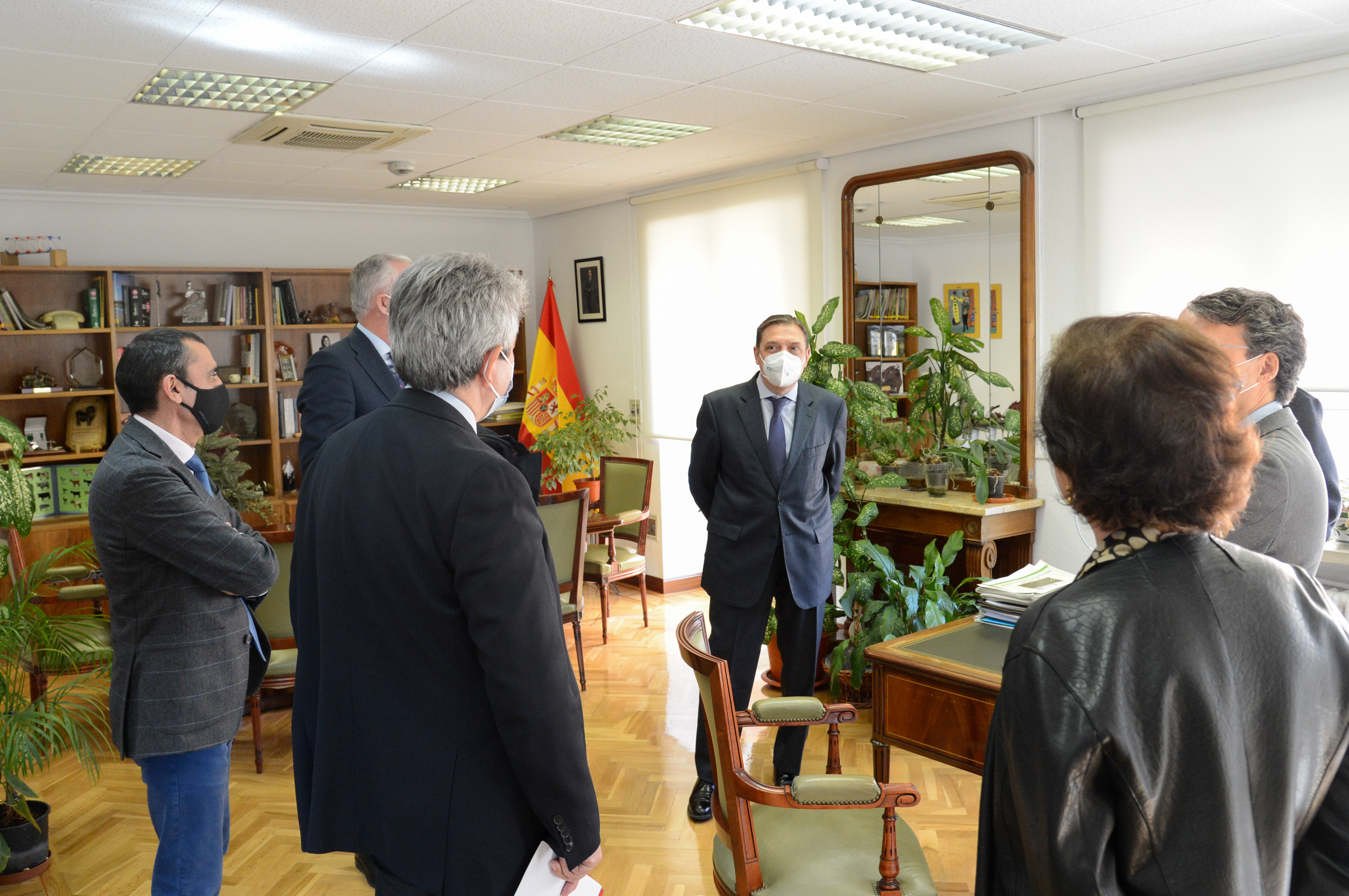 El ministro de Agricultura, Pesca y Alimentación, Luis Planas, ha visitado esta mañana las direcciones generales de Producciones y Mercados Agrarios y de Sanidad de la Producción Agraria, que el ministerio tiene ubicadas en la calle Almagro. Durante el recorrido, Luis Planas ha podido conversar con el equipo directivo y el personal funcionario que desempeñan su tarea en estas dos dependencias ministeriales.