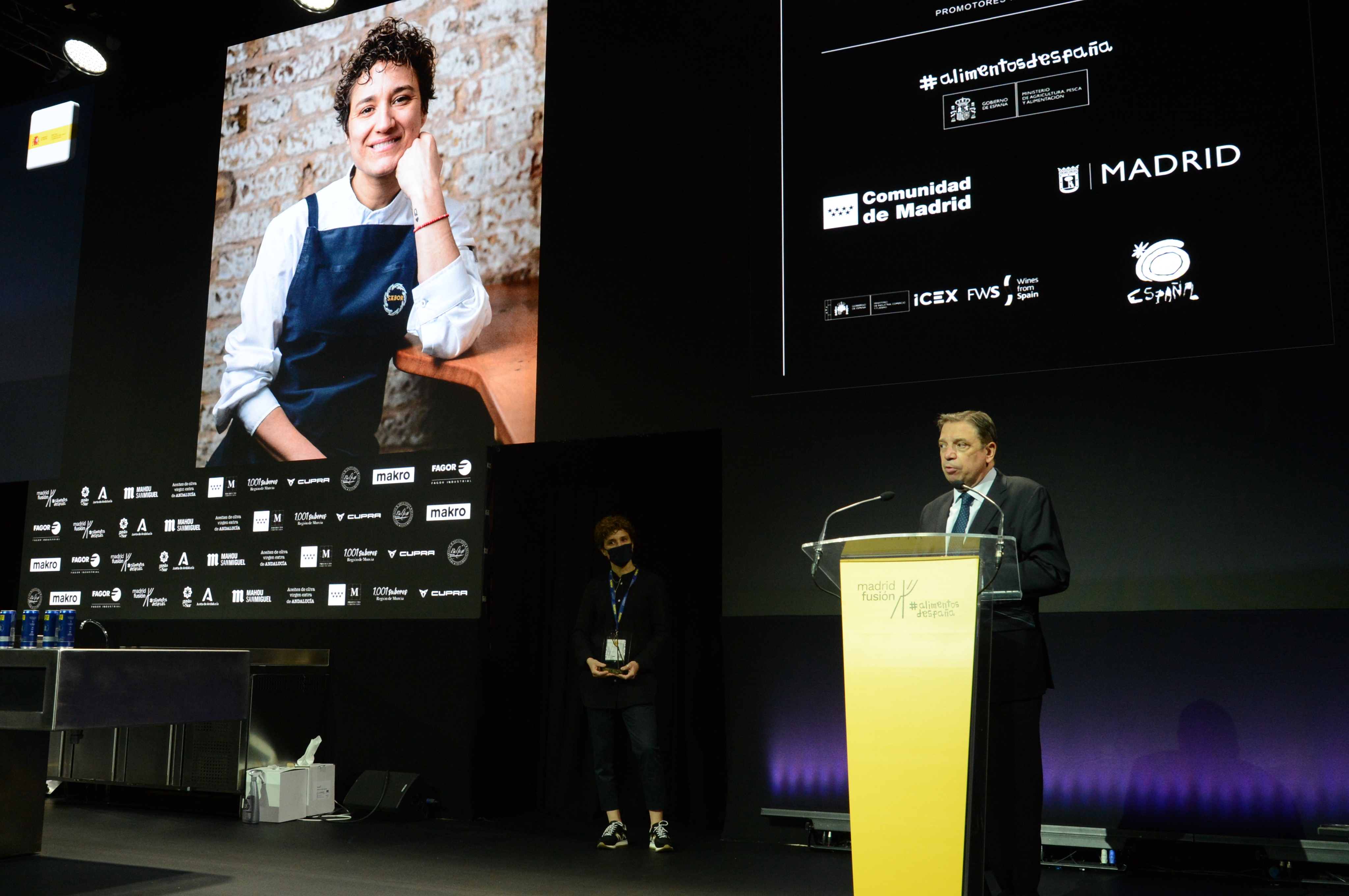 El ministro de Agricultura, Pesca y Alimentación, Luis Planas, hay entregado hoy el primer premio “Alimentos de España-Madrid Fusión” al restaurante Sabor, de la chef estrella Michelin Nieves Barragán, dedicado a la difusión del arte culinario español en el Reino Unido. Esta cocinera bilbaína es una gran defensora los alimentos españoles y durante los veranos recorre nuestro país en busca de productos locales con los que abastecer su restaurante.