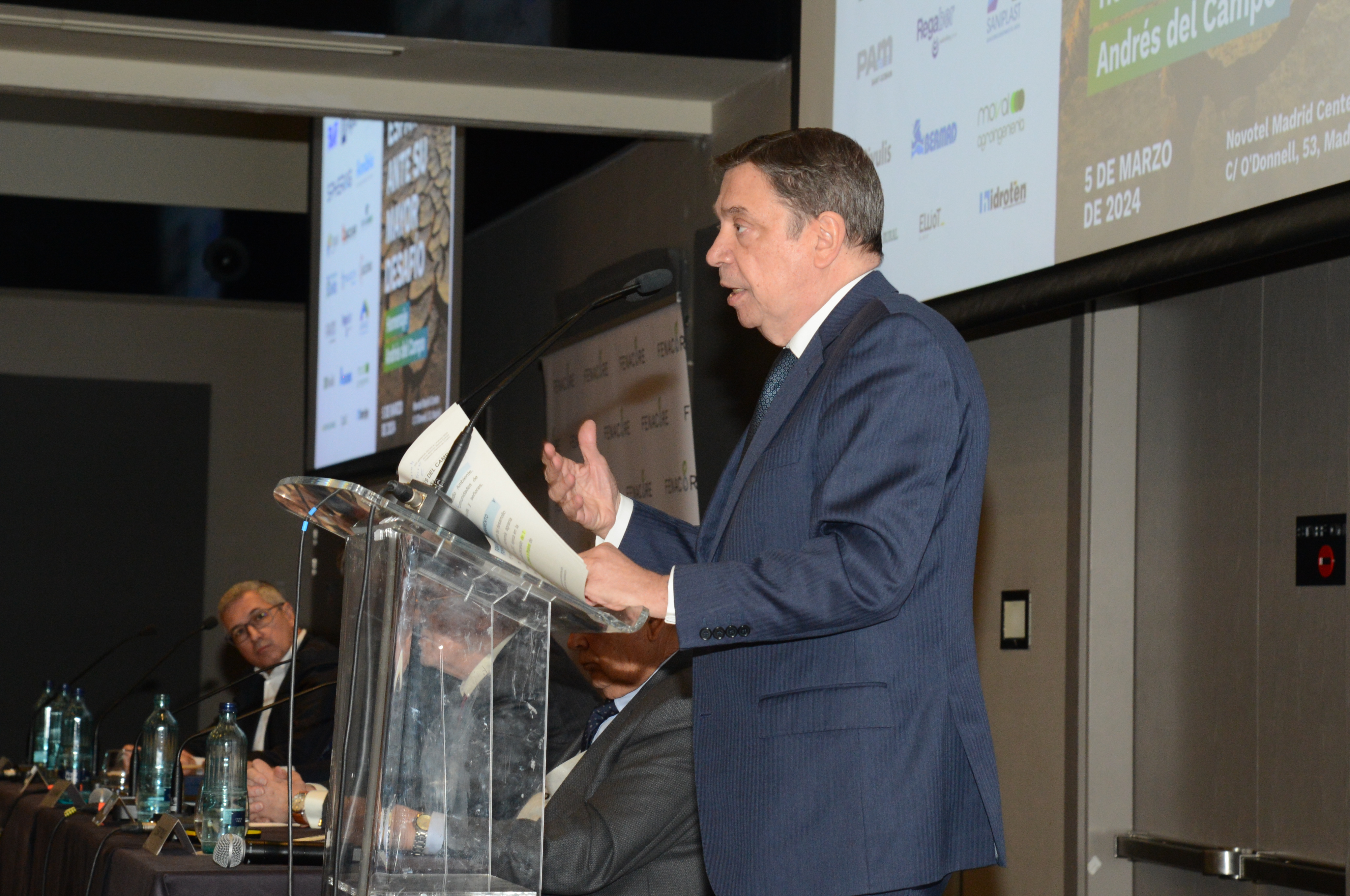 Luis Planas ha participado hoy en la XXII Jornada Técnica de la Federación Nacional de Comunidades de Regantes de España (Fenacore), donde ha expresado el firme compromiso del Gobierno para consolidar un modelo de regadíos sostenible y eficiente, que ahorre recursos, agua, energía e insumo a las explotaciones agrarias, en el actual contexto de cambio climático.