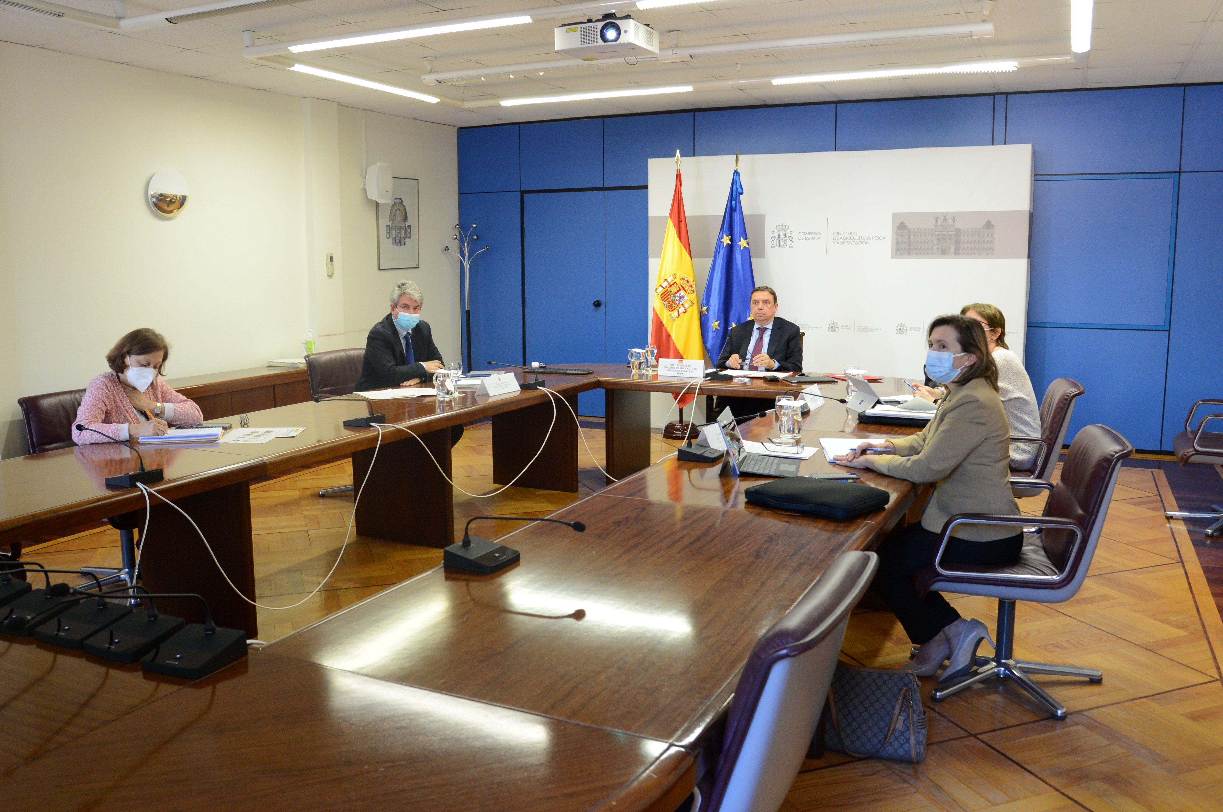 El ministro ha recalcado la necesidad de seguir “unidos y en la misma línea” para defender los intereses pesqueros de todos los Estados miembros. Luis Planas se ha reunido hoy, por videoconferencia, con el comisario de Pesca de la Unión Europea, Virjinijus Sinkevicius, y los ministros de Pesca de la Unión Europea de 10 Estados miembros para analizar el estado de las consultas realizadas en los últimos meses en el marco del Acuerdo de Comercio y Cooperación firmado con el Reino Unido tras el brexit. En febrero se realizaron varias rondas de consultas para alcanzar un acuerdo en la fijación de los TAC y cuotas del año en curso y, en el caso de las especies de aguas profundas, también para el año 2022, para las poblaciones de especies compartidas y presentes en ambas aguas, comunitarias y británicas. En este momento, existe un consenso en las cifras de TAC para prácticamente todas las poblaciones, que siguen mayoritariamente las recomendaciones científicas disponibles del Consejo Internacional para la Exploración del Mar (ICES, por sus siglas en inglés). En el caso de España resulta de especial interés lo acordado previamente respecto al mantenimiento de los TAC de besugo del Cantábrico y de los stocks de bacalao en el oeste de Escocia y el mar Céltico respecto a 2020, lo que permitirá el mantenimiento de la actividad pesquera española en niveles similares a años anteriores, incluyendo la cobertura de las capturas accesorias a desembarcar por la obligación de desembarque. Sin embargo, existen discrepancias sobre las flexibilidades que quiere introducir Reino Unido en la fijación y uso de algunas cuotas y que, según señala Planas, “deben tener un enfoque común y armonizado”. Se trata de la propuesta por parte del Reino Unido de introducir nuevas flexibilidades entre áreas, principalmente entre el mar del Norte y el oeste de Escocia, en el uso de algunas cuotas de especies demersales, y también de la caballa.