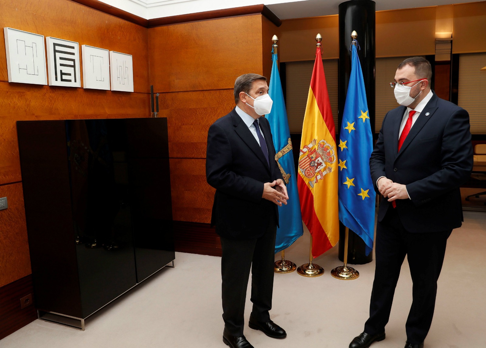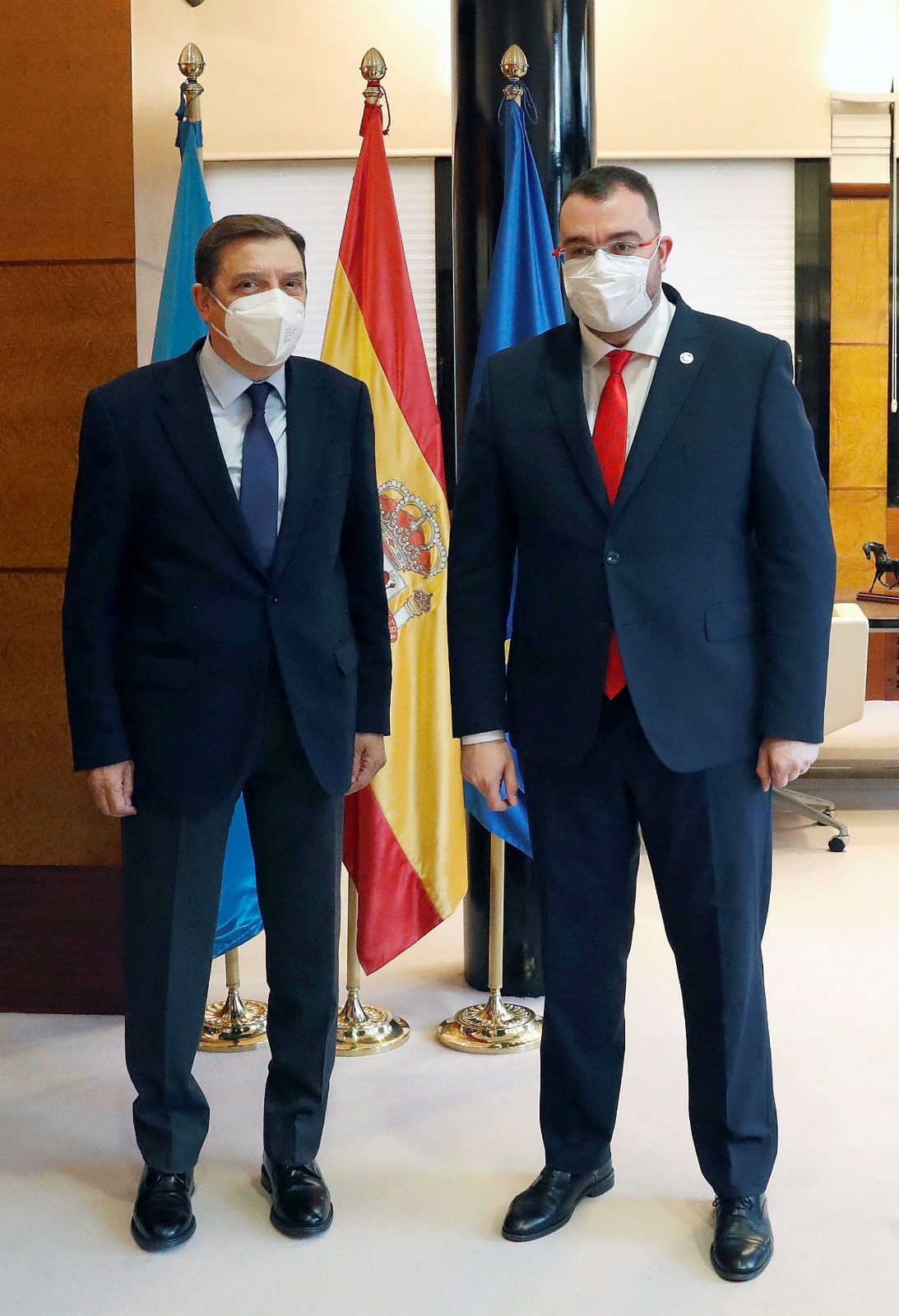 El ministro de Agricultura, Pesca y Alimentación, Luis Planas, se ha reunido hoy, en Oviedo, con el presidente del Principado de Asturias, Adrián Barbón, con quien ha analizado aspectos de interés para el sector agroalimentario y pesquero de esta comunidad autónoma.