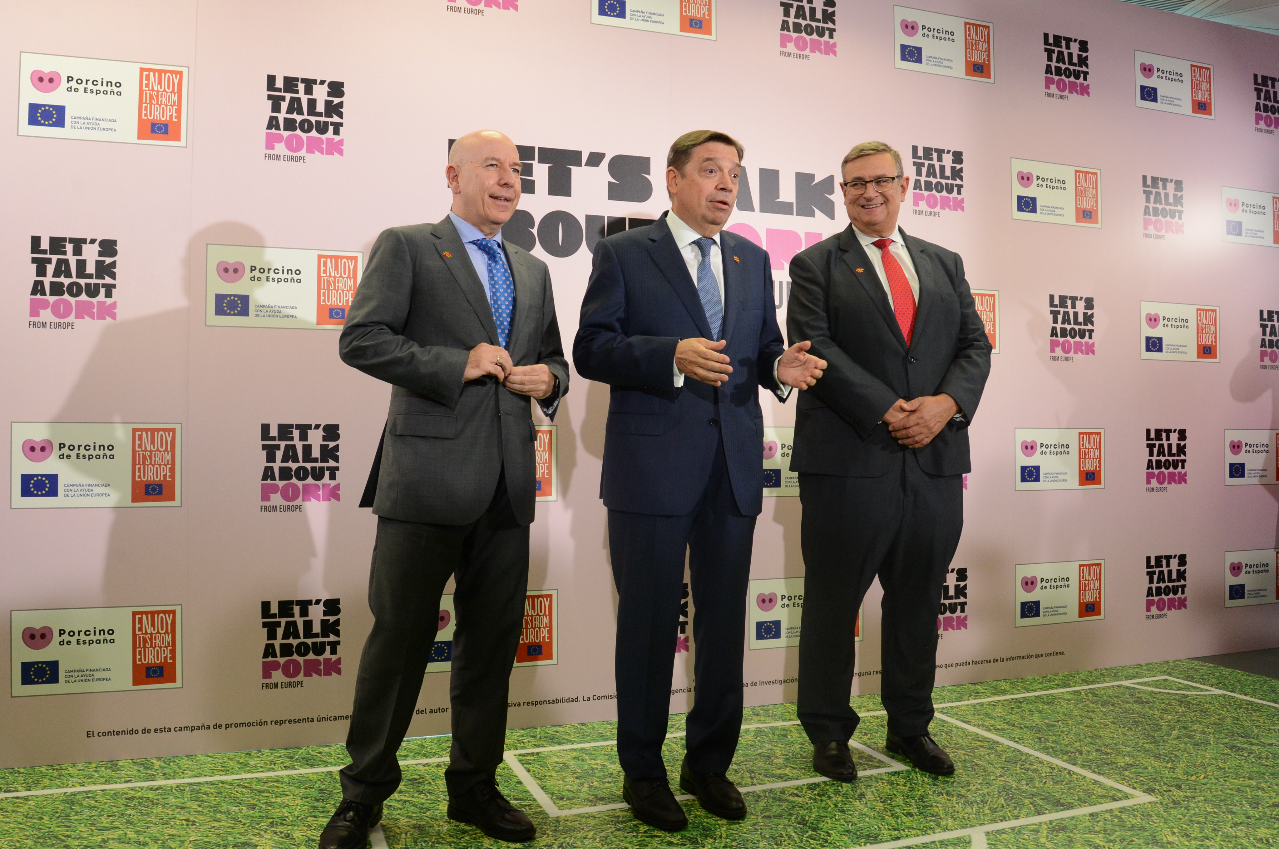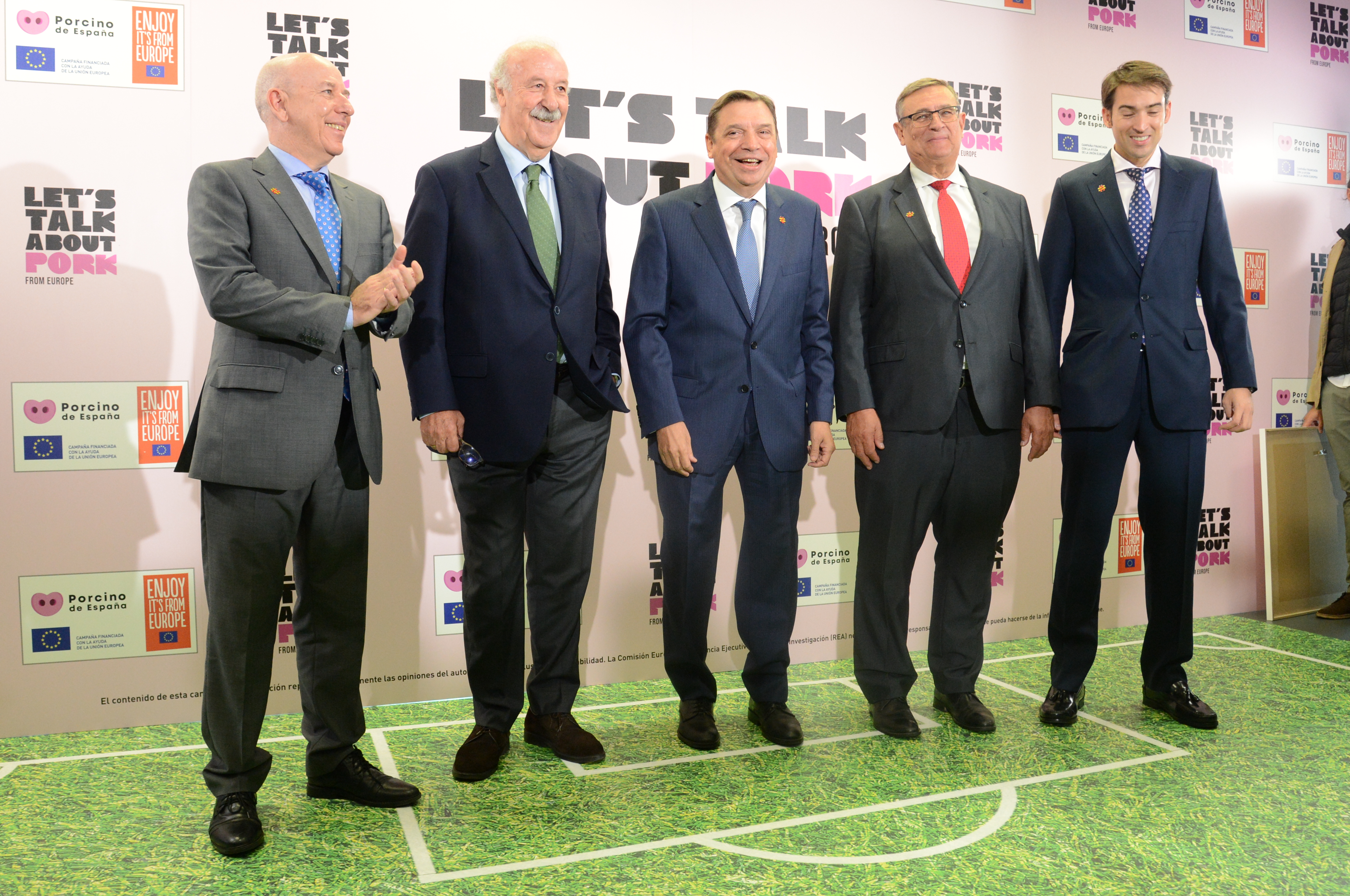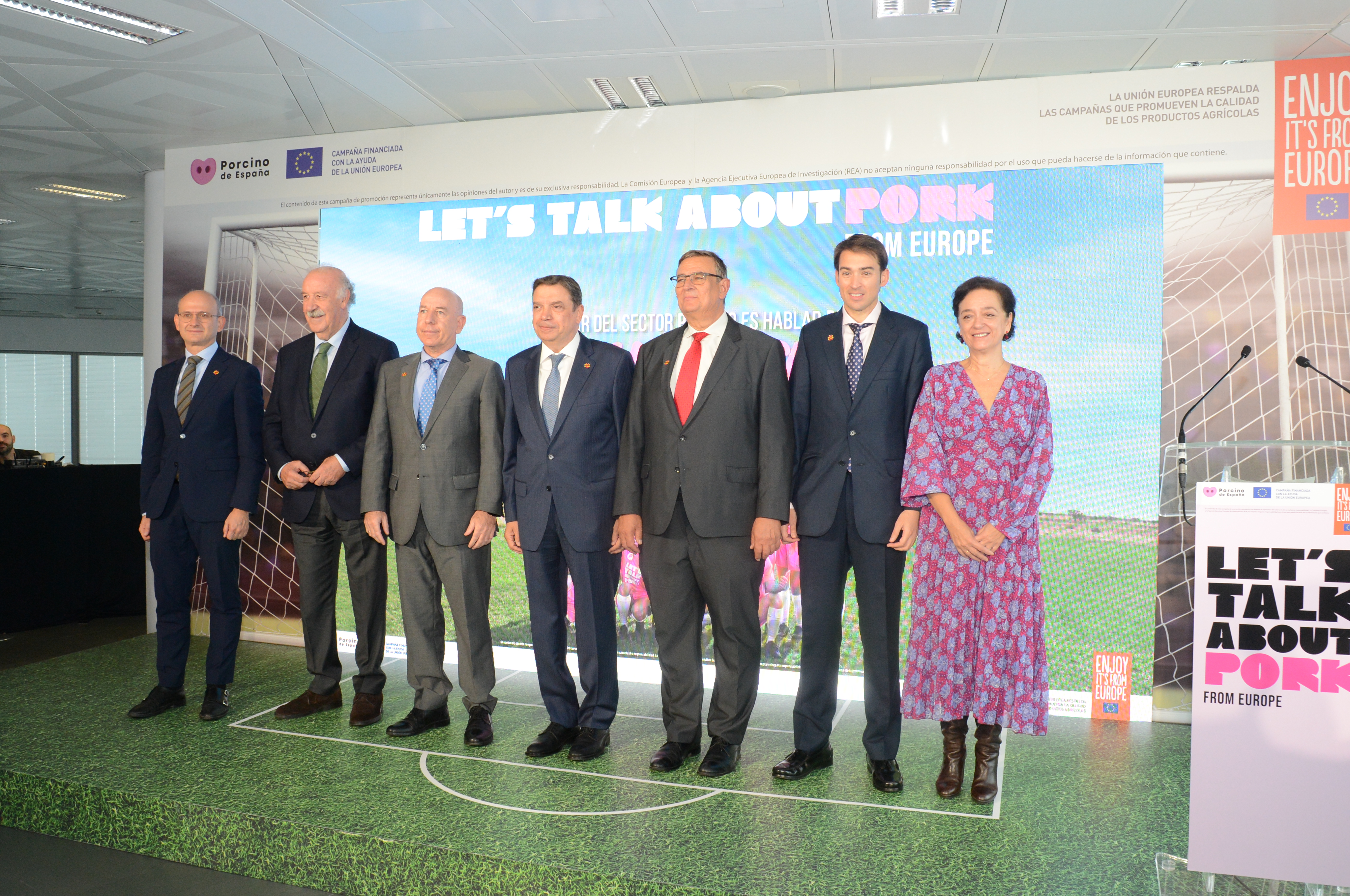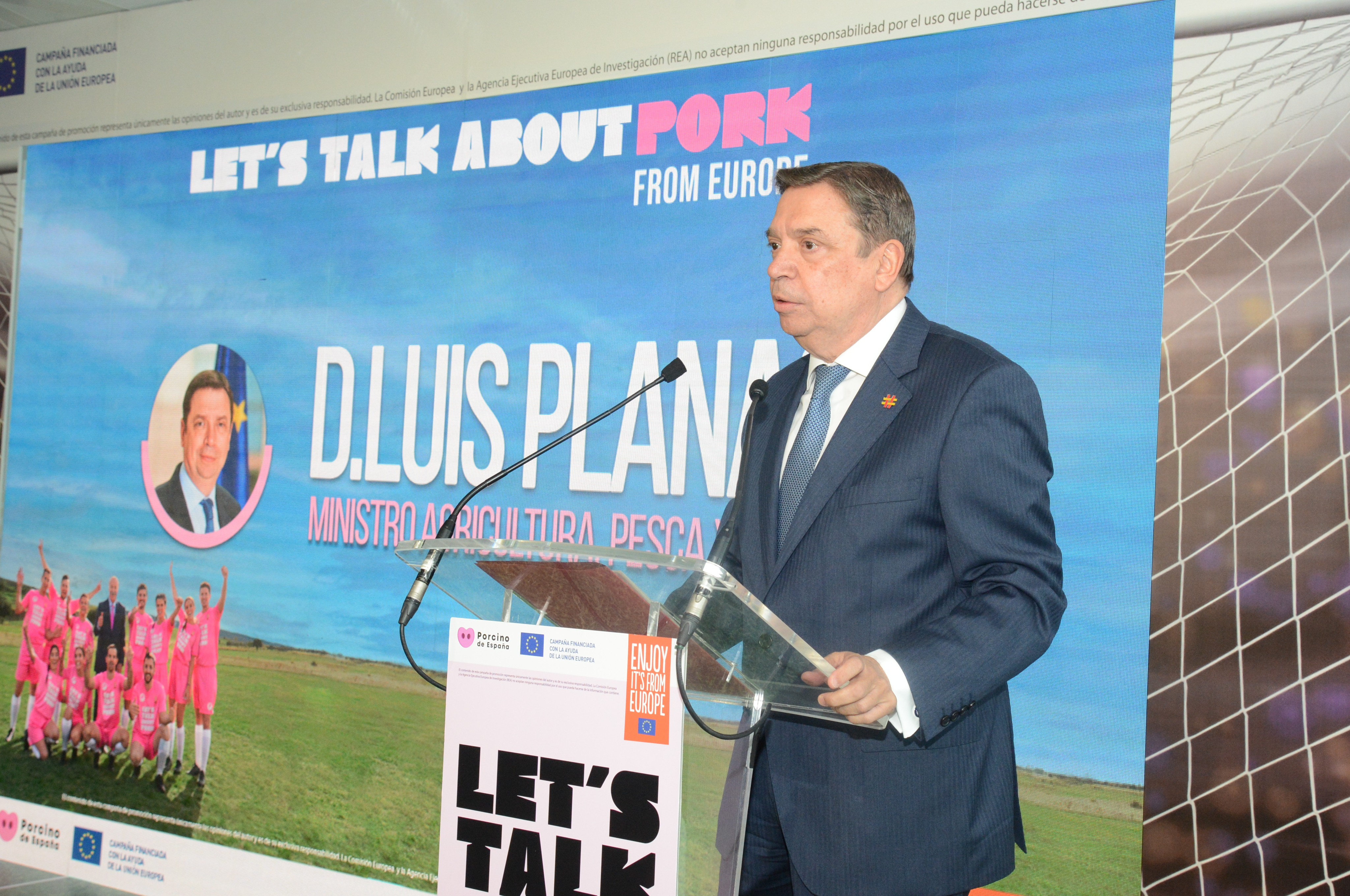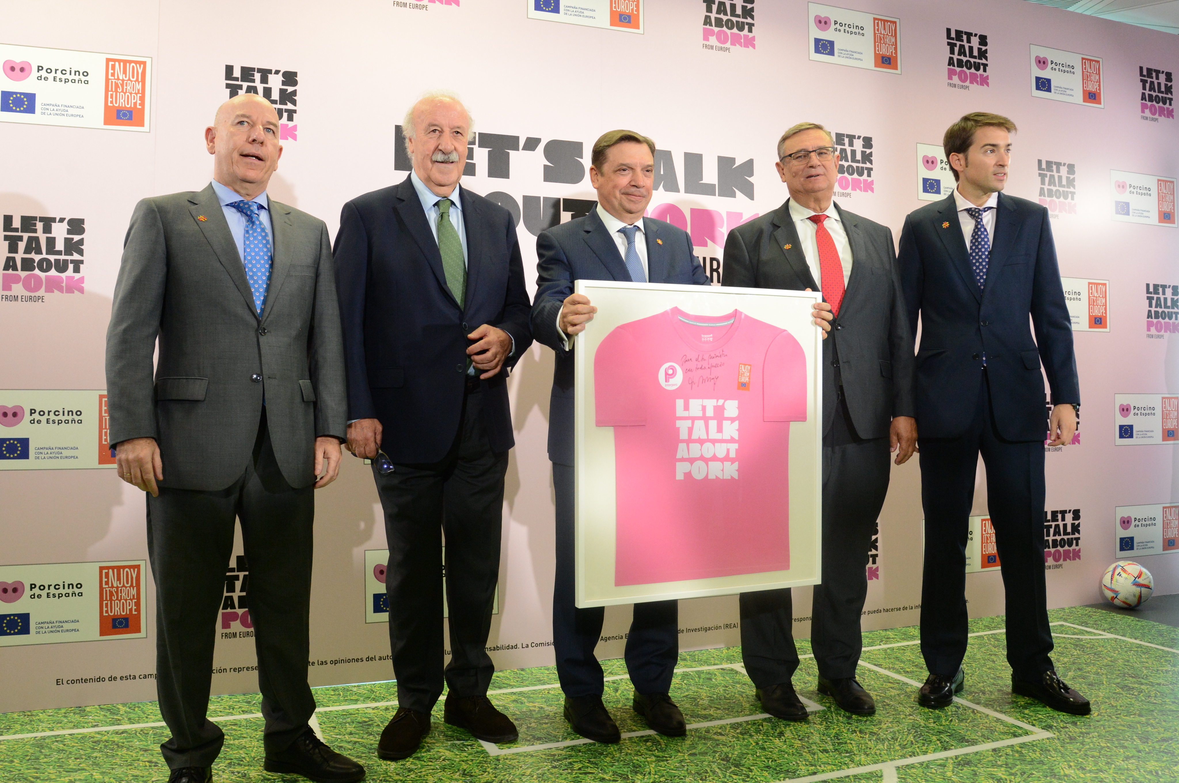 El ministro de Agricultura, Pesca y Alimentación, Luis Planas, ha efectuado, esta mañana, el saque de honor en la presentación del spot promocional que la interprofesional del porcino de capa blanca, INTERPORC, divulgará con motivo del Mundial de Fútbol que se celebra en Catar. Se trata de un anuncio que, en el marco de la campaña Let’s talk about pork, homenajea a los profesionales del sector porcino y pone de manifiesto su compromiso con la alimentación sana, segura y de calidad.