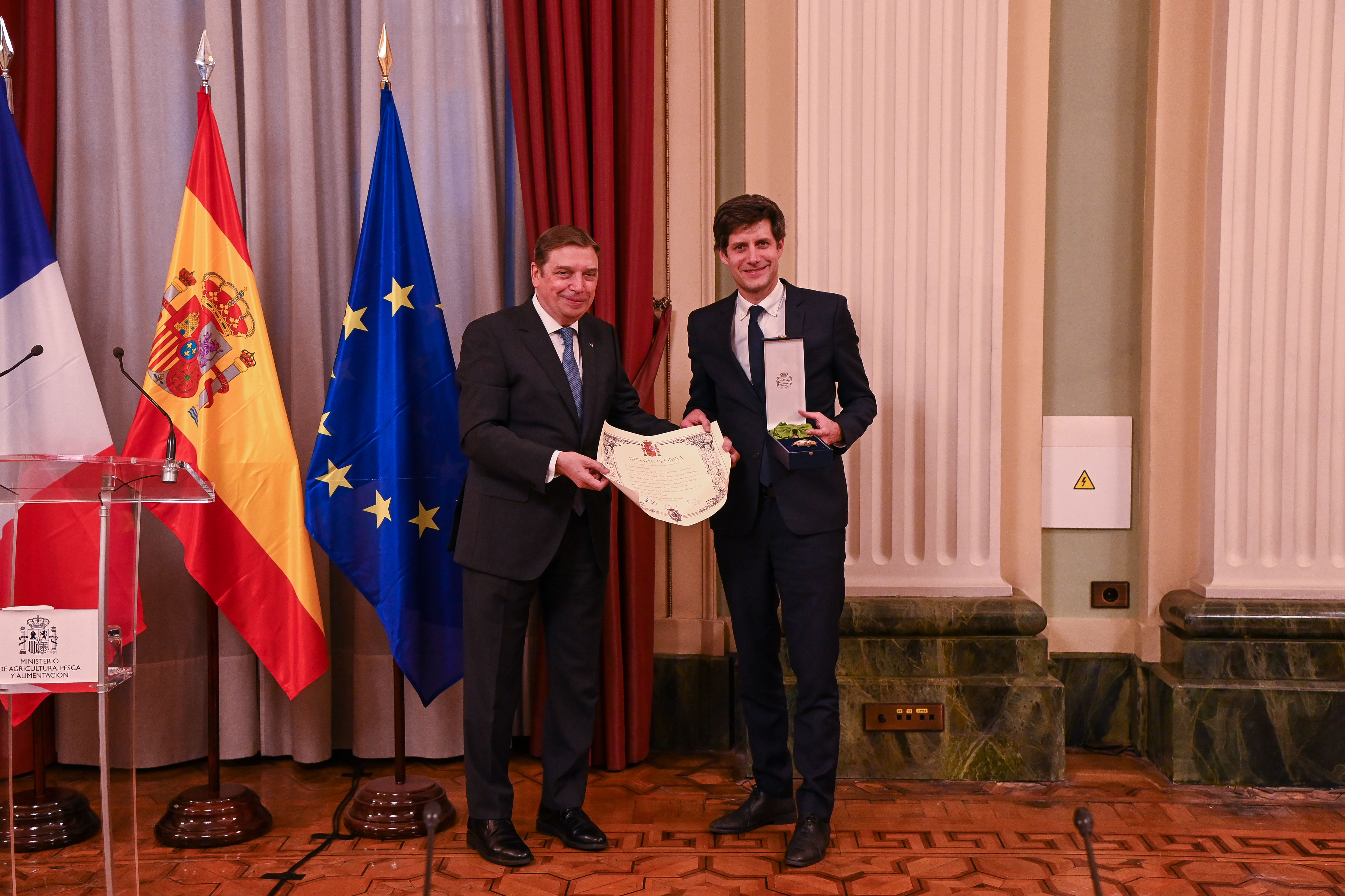 Julien Denormandie ha recogido este galardón hoy ya que no pudo asistir al acto de entrega de las diferentes distinciones celebrada el 17 de noviembre de 2022. La Gran Cruz del Mérito Agrario, Pesquero y Alimentario se creó en 1987 para premiar a las personas que hayan tenido una actuación destacada en los sectores agrario, pesquero y alimentario. Se divide en tres secciones, denominadas “Mérito Agrario”, “Mérito Pesquero” y “Mérito Alimentario”.