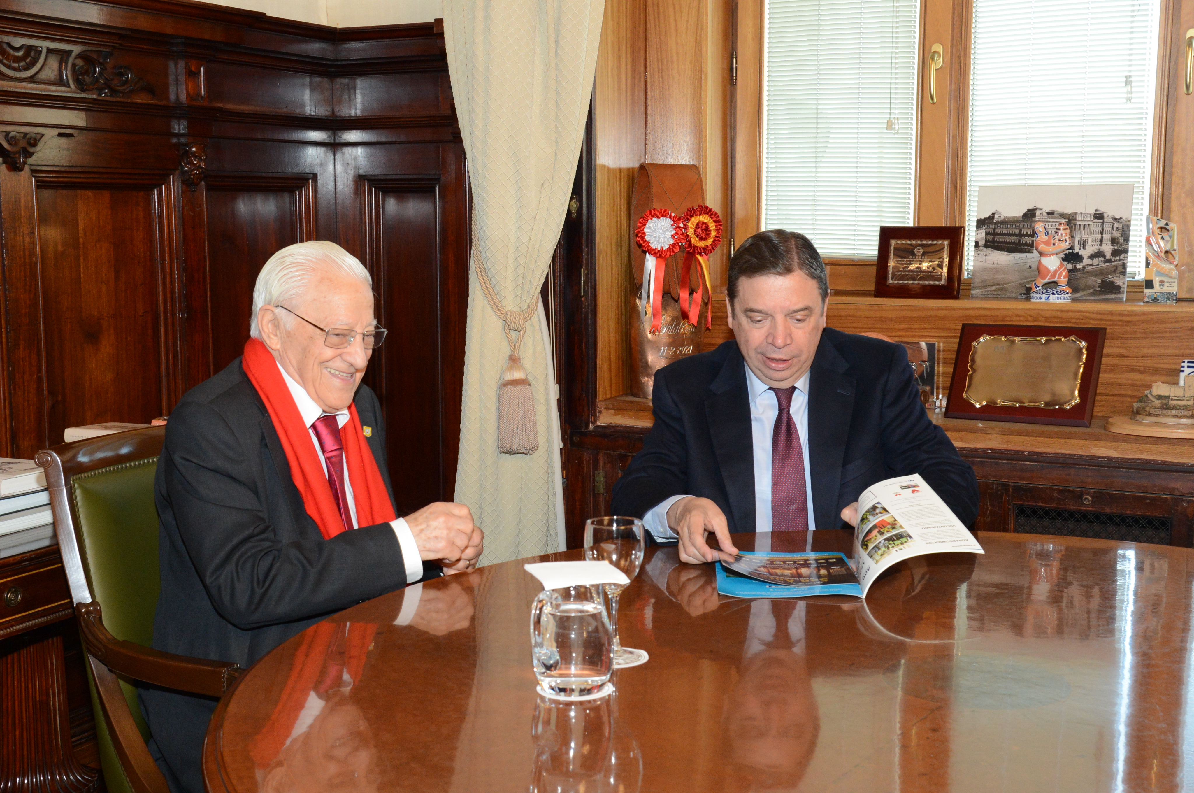 El ministro de Agricultura, Pesca y Alimentación, Luis Planas, se ha reunido hoy con el Padre Ángel, fundador de Mensajeros de la Paz. En el encuentro, Planas ha reiterado su compromiso con los más necesitados y ha analizado con el Padre Ángel posibles vías de cooperación. Por su parte, el Padre Ángel le ha entregado al ministro la memoria anual de su asociación y le ha presentado sus nuevos proyectos.