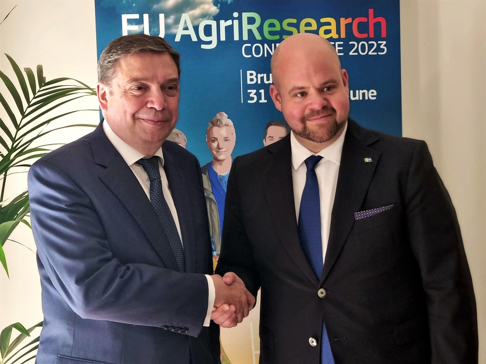 El ministro, que ha intervenido hoy en Bruselas en la EU AgriResearch Conference 2023, dedicada al “conocimiento, innovación y competencias para horizontes sostenibles”, ha señalado que el impulso y la promoción de las nuevas tecnologías en el sector agroalimentario será una de las prioridades de la presidencia española de la Unión Europea en el segundo semestre del año, ya que la innovación es clave para dar respuesta al que ha definido como “principal reto que tiene el sistema alimentario en el planeta, como producir más alimentos con un menor consumo de recursos naturales y de forma más sostenible”. Por ello, el Consejo de Ministros de Agricultura que se celebrará en Córdoba entre los días 3 y 5 de septiembre versará sobre las nuevas tecnologías como herramienta para una agricultura más resiliente frente al cambio climático. El ministro ha afirmado que la Unión Europea no puede quedarse atrás en este ámbito frente al empuje de países como Estados Unidos o China. El ministro ha precisado que la aplicación de nuevas tecnologías en la producción agroalimentaria va más allá de las relacionadas con la información y la comunicación o con la digitalización, y que incluye también el desarrollo de nuevas técnicas genómicas que ofrecen posibilidades de edición genética muy precisas y controladas. Ha citado como ejemplo el desarrollo de variedades de cultivo más resistentes a la sequía o a enfermedades y con mejor rendimiento. El ministro se ha mostrado confiado en que la Comisión Europea presente a principios de julio su propuesta legislativa sobre esta materia para que durante la presidencia española se intente llegar a un acuerdo político sobre un asunto que ha considerado crucial. Luis Planas ha insistido en que es necesario desarrollar conocimiento, innovación y tecnología para adaptar la agricultura a las consecuencias del cambio climático que ya han empezado a notarse. Además, ha señalado que deben contribuir también a reducir la dependencia de las importaciones ante escenarios políticos inestables como la guerra en Ucrania, y optimizar las oportunidades para conseguir la autonomía estratégica abierta. La transición verde, ha señalado el ministro, es una cuestión urgente y necesaria, que no responde a cuestiones ideológicas, y que ofrece importantes beneficios a la sociedad en términos de salud, ahorro de recursos y oportunidades de empleo, entre otros. Así ha señalado que la innovación debe contribuir también a la reducción del desperdicio alimentario y aprovechar las ventajas de la economía circular. El intercambio de conocimiento entre los países es necesario para mejorar la seguridad alimentaria mundial y la sostenibilidad del planeta, ha apostillado. ASOCIACIONES EUROPEAS DE INNOVACIÓN El ministro ha abogado también por una mayor conexión entre los avances científicos y su aplicación a las necesidades reales del agro y de las empresas, que es uno de los objetivos de la Asociaciones Europeas de Innovación (EIP-Agri). España es el segundo país de la UE, por detrás de Italia, en la realización de proyectos de esta estrategia, con más de 600 proyectos financiados, para los que el Ministerio de Agricultura, Pesca y Alimentación ha concedido 70,8 millones de euros para la creación de 177 grupos operativos y la ejecución de 124 proyectos innovadores. En esta conferencia, organizada por la Dirección General de Agricultura de la Comisión Europea, participan, junto a los representantes institucionales, científicos, agricultores, ganaderos, comunidades rurales, la industria, asesores, legisladores y representantes de ONG para intercambiar puntos de vista sobre logros y retos de la investigación y la innovación en agricultura, silvicultura y desarrollo rural. REUNIONES BILATERALES Previamente, el ministro ha mantenido sendas reuniones con el ponente en el Parlamento Europeo sobre el expediente de “Indicaciones Geográficas”, Paolo de Castro, y con el ministro de Asuntos Rurales de Suecia, Peter Kullgren, país que ostenta en este semestre la Presidencia del Consejo de la Unión Europea (UE). El reglamento de las Indicaciones Geográficas será uno de los dosieres sobre el que se intentará cerrar un acuerdo interinstitucional entre el Consejo y el Parlamento Europeo durante la Presidencia española, en el segundo semestre del año. España ha liderado el grupo “Amigos de las Indicaciones Geográficas”, que cuenta con el apoyo de 15 Estados Miembros que, entre otros aspectos, prevé fortalecer el papel de las agrupaciones de productores (en España se trata de la figura de los consejos reguladores) y que se basa en el respeto a los modelos existentes en los países mediterráneos. Precisamente durante la Presidencia sueca de la UE, que concluye a final de junio, tendrá lugar la primera reunión de los trílogos (entre Consejo, Parlamento Europeo y Comisión) prevista para el 6 de junio. Durante el semestre español hay previsto otro encuentro a tres bandas el 18 de julio. Luis Planas y Peter Kullgren han iniciado el “traspaso” de algunos de los asuntos que pasarán al semestre de Presidencia española. Luis Planas ha considerado muy positivo el resultado de la reunión del Consejo de Ministros de Agricultura celebrada ayer en Bruselas y el encuentro bilateral que mantuvo con el comisario por lo que supone de paso adelante para desbloquear el uso de fondos de la reserva de crisis para apoyar a los agricultores y ganaderos frente a la sequía. El ministro ha señalado que las peticiones de España y Portugal y avaladas por Francia e Italia recibieron un apoyo mayoritario y que en las próximas semanas se concretará su articulación.