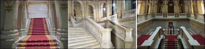 Tres panorámicas de la escalera imperial, diseñada por Ricardo Velázquez y ubicada entre los dos lucernarios. Fotos: autores varios extraídas del...