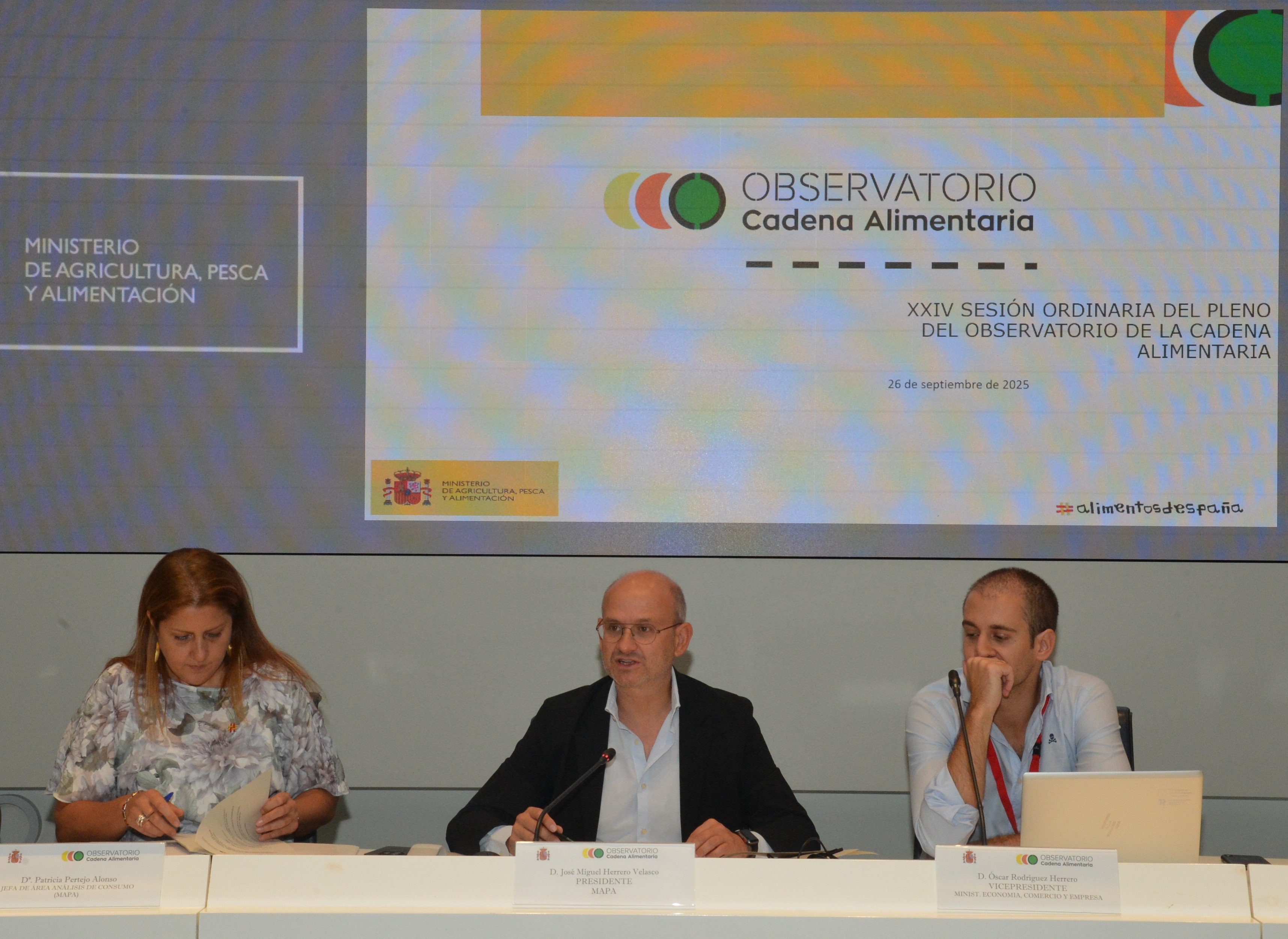 El pleno del Observatorio de la Cadena Alimentaria ha analizado hoy, en su tercera sesión del año 2025, las nuevas herramientas estadísticas que proporcionan información útil y actualizada sobre datos oficiales de interés para todos los eslabones de la cadena. Una información que es clave para el diseño de políticas públicas. Además, el Instituto Nacional de Estadística (INE) ha presentado un informe sobre la evolución de los precios. En agosto, la tasa anual del IPC se mantuvo en el 2,7 % mientras que la inflación subyacente alcanzó el 2,4 %. El Observatorio de la Cadena Alimentaria es un órgano colegiado del Ministerio de Agricultura, Pesca y Alimentación cuyo objetivo es optimizar el funcionamiento de la cadena alimentaria en España. Están representados la Administración General del Estado, las comunidades autónomas y todos los eslabones de la cadena alimentaria.