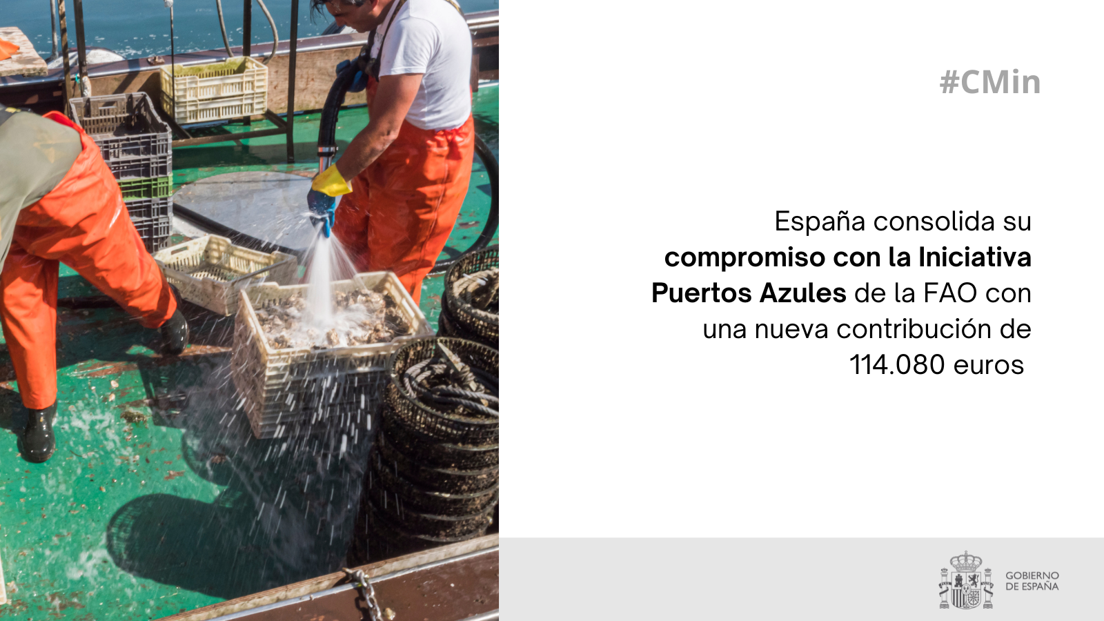 El Consejo de Ministros ha autorizado hoy al Ministerio de Agricultura, Pesca y Alimentación a realizar una nueva contribución económica de 114.080 euros para apoyar el Programa de Capacitación de la Iniciativa Puertos Azules de la Organización de las Naciones Unidas para la Alimentación y la Agricultura (FAO).