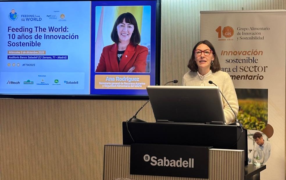 La secretaria general de Recursos Agrarios y Seguridad Alimentaria ha clausurado la jornada Feeding The World, que el Grupo de Innovación Sostenible viene organizando desde hace 10 años. En su intervención, la Secretaria General ha presentado las líneas del Ministerio para garantizar la sostenibilidad de los sistemas agroalimentarios, englobadas en la Estrategia Nacional de Alimentación, con medidas concretas para producir alimentos con un uso sostenible del agua o de lucha contra el desperdicio alimentario, entre otras. Así mismo, ha explicado cómo trabaja el Ministerio en la ordenación ganadera y la bioseguridad, hoy esenciales para reducir el riesgo de enfermedades animales. También cómo con la normativa sobre suelos sostenibles integra en las explotaciones de manera generalizada un modelo productivo para garantizar la seguridad alimentaria. Rodríguez ha anunciado cómo está trabajando el Ministerio de cara a la PAC post 2027 para que la innovación siga basada en esa alianza estratégica de innovación y la necesidad de destinar fondos en las zonas rurales para el desarrollo de herramientas innovadoras que garanticen la sostenibilidad económica, social y medioambiental.