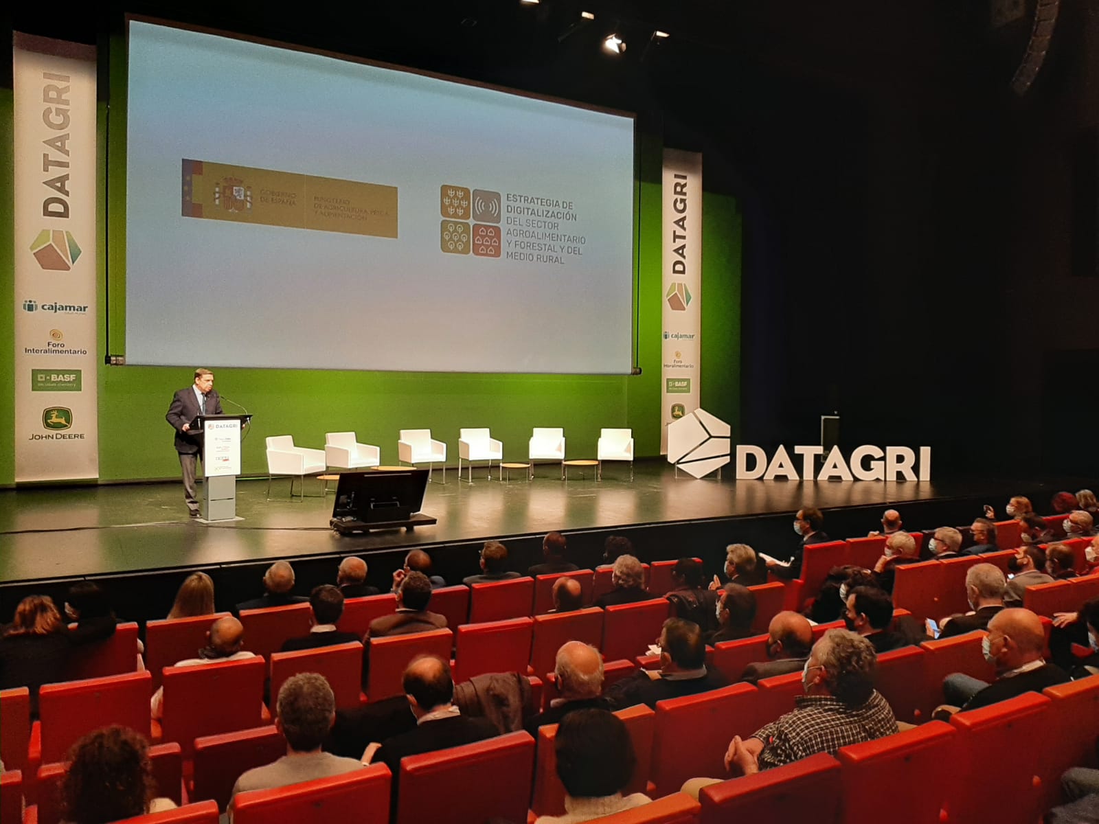 Luis Planas ha participado hoy, en Lleida, en la inauguración de la 5ª edición del Foro para el Impulso de la Transformación Digital en el Sector Agroalimentario (Datagri 2021), donde ha recalcado el carácter estratégico del sector agroalimentario español, que aporta el 10 % al PIB nacional y genera más de 2,8 millones de empleos, directos e indirectos, además de tener una gran vocación exportadora, con un valor de 58.210 millones de euros en el año móvil hasta septiembre de 2021.
