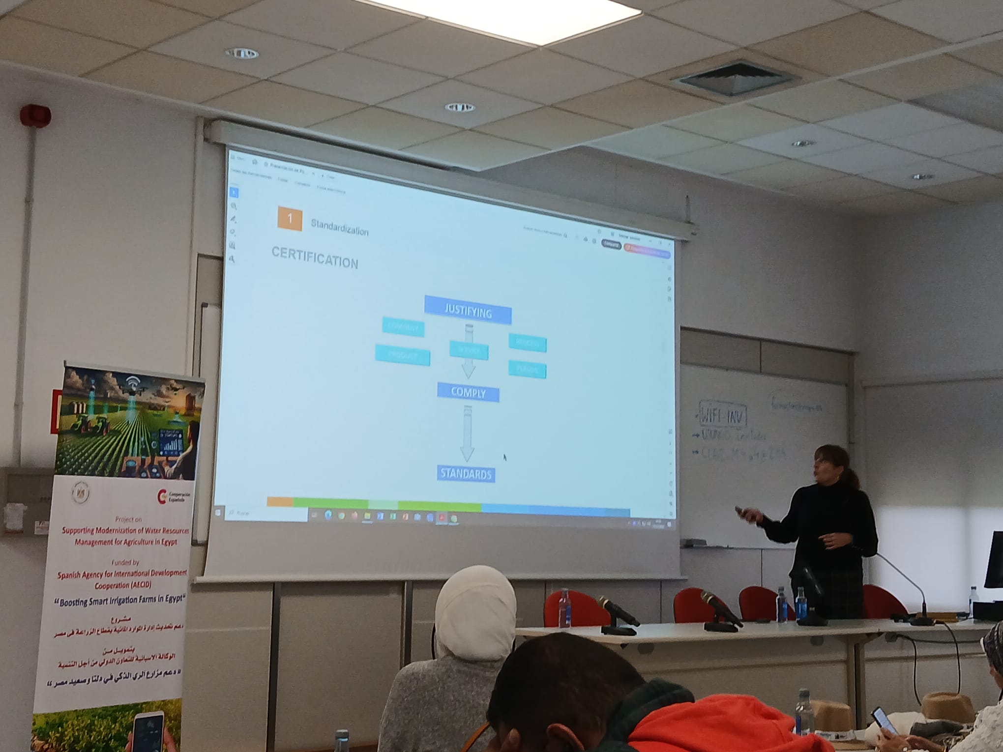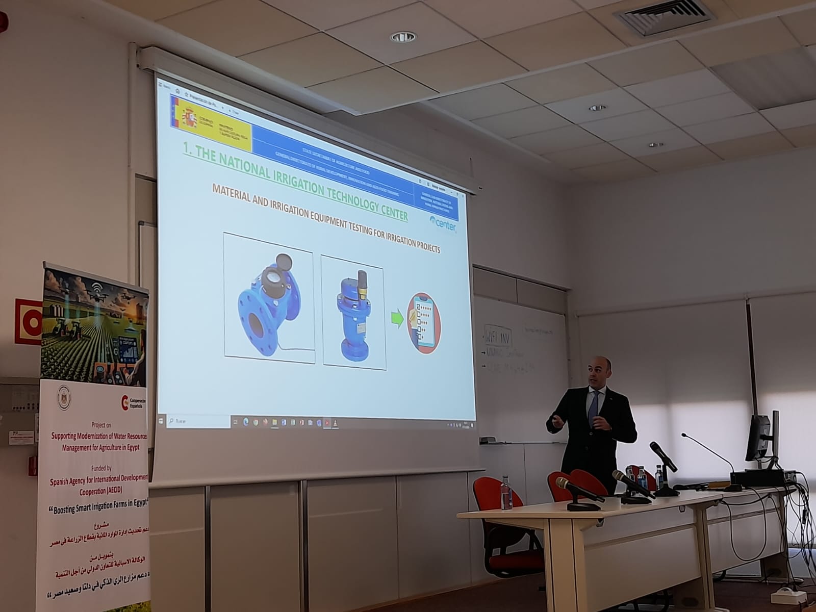 El pasado 17 de noviembre de 2025, visitó el Centro Nacional de Tecnología de Regadíos (CENTER), una Delegación procedente de Egipto, formada, fundamentalmente, por técnicos del Ministerio de Recursos Hídricos y Regadío, así como por expertos en la materia involucrados en el desarrollo del Plan Nacional de Recursos Hídricos (2023 – 2027) que está implementando actualmente el Gobierno Egipcio. En el CENTER, centro perteneciente al Ministerio de Agricultura, Pesca y Alimentación (MAPA) y centro de referencia nacional e internacional en el sector del regadío, fueron recibidos por D. Carlos Garrido, Director del CENTER, que les explicó el trabajo que se realiza en las diferentes instalaciones, destacando los proyectos de investigación que se llevan a cabo en la finca experimental, así como los ensayos de materiales y equipos de riego que se ejecutan en el Laboratorio Central para Ensayo de Materiales y Equipos de Riego del CENTER. También pudieron conocer las labores de normalización que tanto a nivel nacional como internacional desempeña el CENTER, y se le animó a la delegación a participar en los Comités de Normalización Internacionales (ISO) y así implementar el cumplimiento de las normas en el desarrollo de los proyectos que se están llevando a cabo. Posteriormente, visitaron la finca experimental, la estación agroclimática perteneciente a la red del Sistema de Información Agroclimática para el Regadío (SiAR) del MAPA y el Laboratorio del CENTER. Todos los miembros de la delegación mostraron un gran interés por los trabajos del CENTER, así como por el gran esfuerzo que está haciendo el Ministerio de Agricultura, Pesca y Alimentación para mejorar el regadío español impulsando el uso de nuevas tecnologías que mejoran considerablemente la eficiencia en el uso del agua y la energía, además de la calidad de vida de los agricultores.