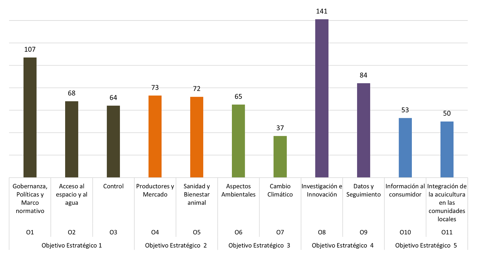 Dentro de estas Tareas, 141 son trabajos de INVESTIGACIÓN E INNOVACIÓN; 107 son trabajos relacionados con GOBERNANZA, POLÍTICAS Y MARCO NORMATIVO; 84 son trabajos de DATOS Y SEGUIMIENTO, 73 son trabajos relacionados con PRODUCTORES Y MERCADOS, 72 son trabajos de Sanidad y Bienestar animal y 68 son trabajos para el ACCESO AL ESPACIO Y AL AGUA. El resto de trabajos se reparte en todas las demás áreas: