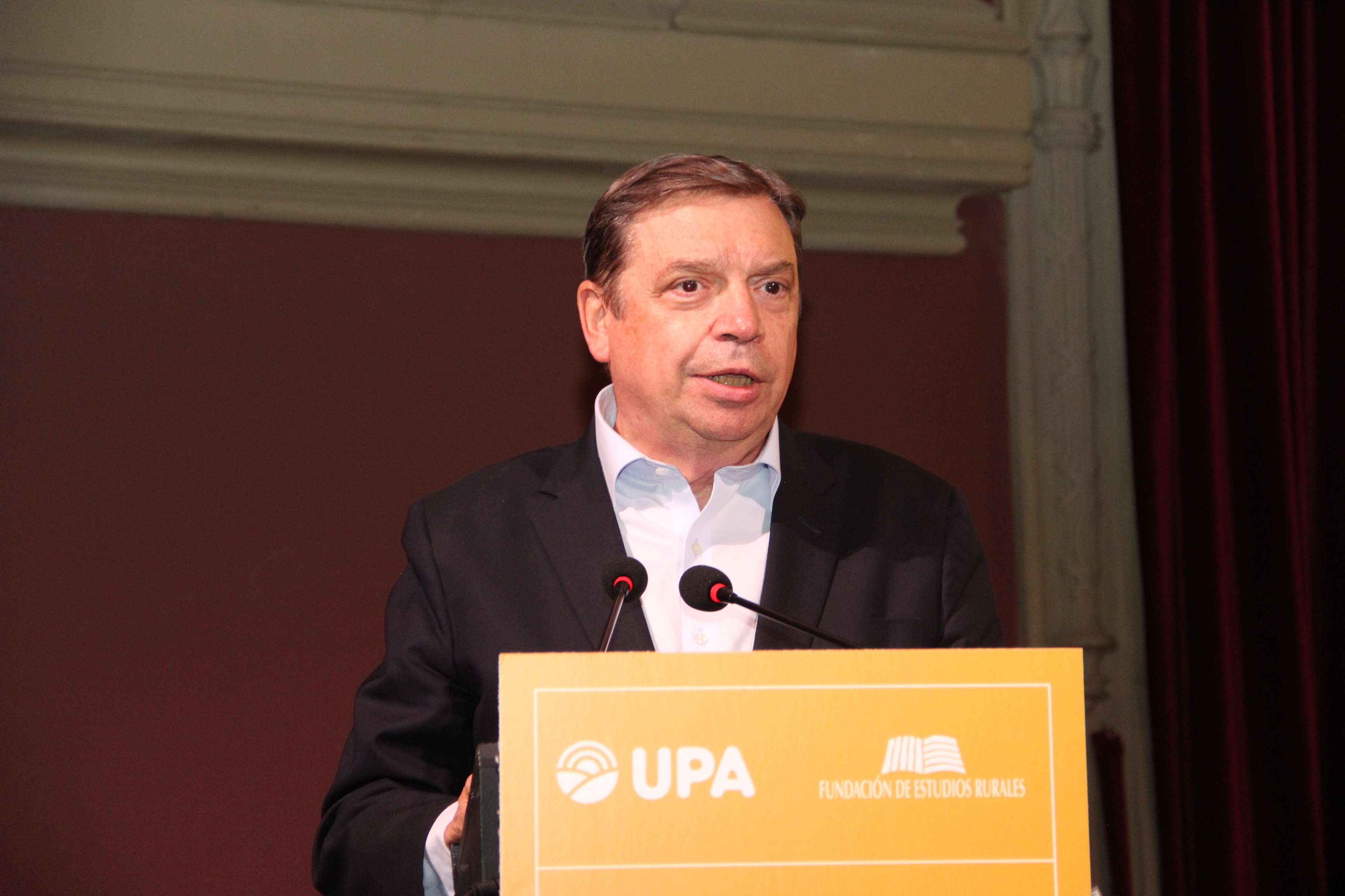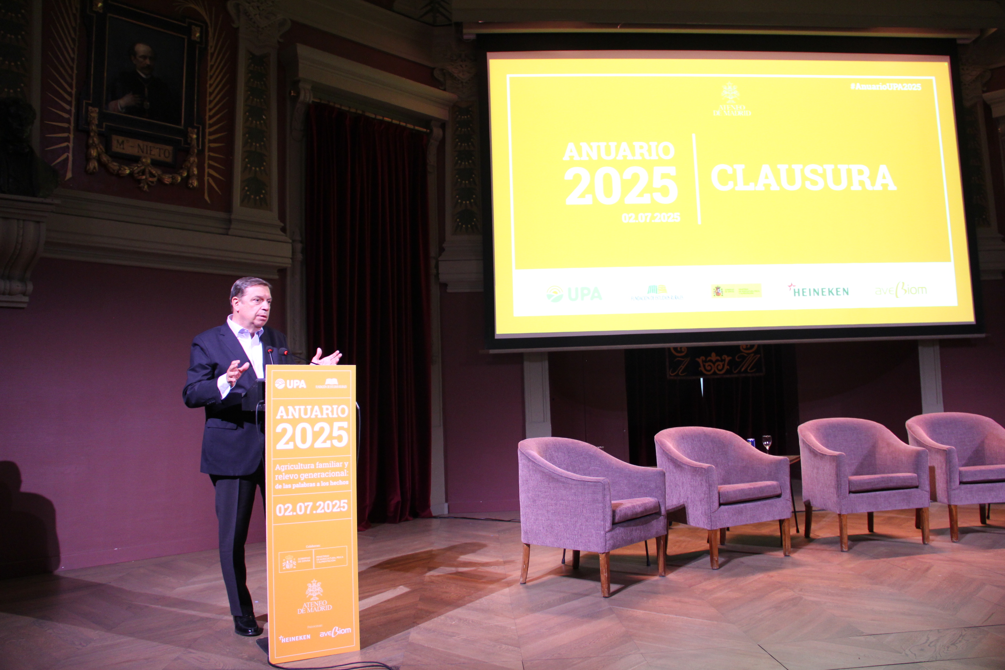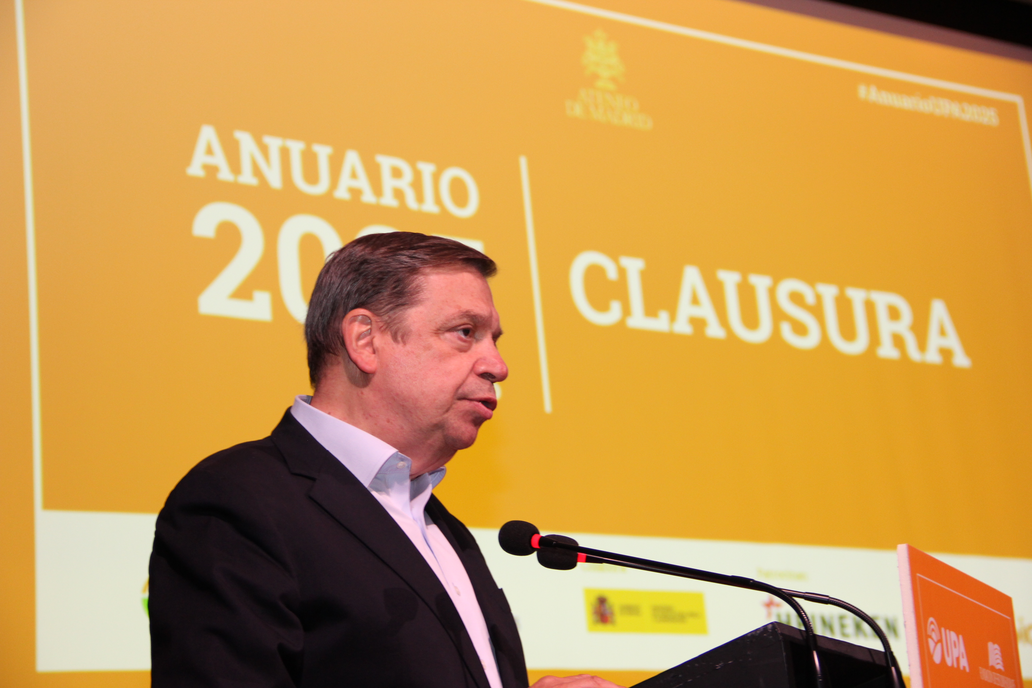 El ministro de Agricultura, Pesca y Alimentación, Luis Planas, ha destacado hoy que el Gobierno avanza y “va a acelerar todo lo que sea posible” en la elaboración y aprobación de la ley de agricultura familiar y profesional, que tiene como objetivo priorizar y proteger este modelo, que es clave para la cohesión social, la sostenibilidad y el mantenimiento del medio rural. Durante la clausura del acto de presentación del Anuario de la Agricultura Familiar de la Unión de Pequeños Agricultores y Ganaderos (UPA), Planas ha anunciado que después de verano el ministerio convocará a todos los interlocutores del sector y las comunidades autónomas para avanzar en los contenidos del proyecto de ley, que es uno de los objetivos prioritarios de la legislatura. “Estamos absolutamente comprometidos con esta tarea”, ha reiterado. En el proceso de consulta pública previa lanzada por el ministerio en marzo se han recibido 67 aportaciones de entidades y organizaciones del sector y sociedad civil. La futura norma tiene ante sí el reto de actualizar la Ley de Modernización de Explotaciones de 1995 y abordar aspectos relevantes como la fiscalidad, el relevo generacional y la igualdad de género. El ministro ha destacado que el modelo de agricultura familiar español está muy vinculado al territorio y se caracteriza por la convivencia entre productores a tiempo total, que tienen su renta exclusivamente dependiente de la agricultura y la ganadería, y otros a tiempo parcial o como actividad complementaria. Unos y otros, ha explicado, “dan vida a nuestros pueblos, al medio rural y eso no está retribuido ha dicho”. Por ello ha explicado que uno de los objetivos de la ley y de la futura Política Agraria Común (PAC) será definir las entidades prioritarias hacia las que se tienen que volcar más las ayudas. AGRICULTURA FAMILIAR Y RELEVO GENERACIONAL Luis Planas ha subrayado que fortalecer la viabilidad de la agricultura familiar es esencial para garantizar el relevo generacional en el campo. Según la última encuesta sobre estructura de las explotaciones agrarias, el número de explotaciones en España ha descendido un 12,4 % desde 2020, y se sitúa en 784.140. Sin embargo, la superficie agrícola utilizada apenas ha caído un 1,6 %, lo que refleja un aumento del tamaño medio de las explotaciones. El ministro ha señalado que más de las dos terceras partes de las personas que trabajan actualmente en el sector agrario, el 67 %, tiene más de 55 años, por lo que el relevo generacional es una necesidad y la única garantía de futuro para el campo. Durante el encuentro, se han entregado también los Premios de la Fundación de Estudios Rurales, unos galardones que ponen en valor el trabajo de las personas que “contribuyen al desarrollo del sector agroalimentario y a darle la visibilidad y el prestigio que se merece”, según Planas Luis Planas ha entregado del Premio de Cultura, Arte y Literatura al artista asturiano Rodrigo Cuevas, por su contribución a la difusión y visibilidad de la cultura rural.