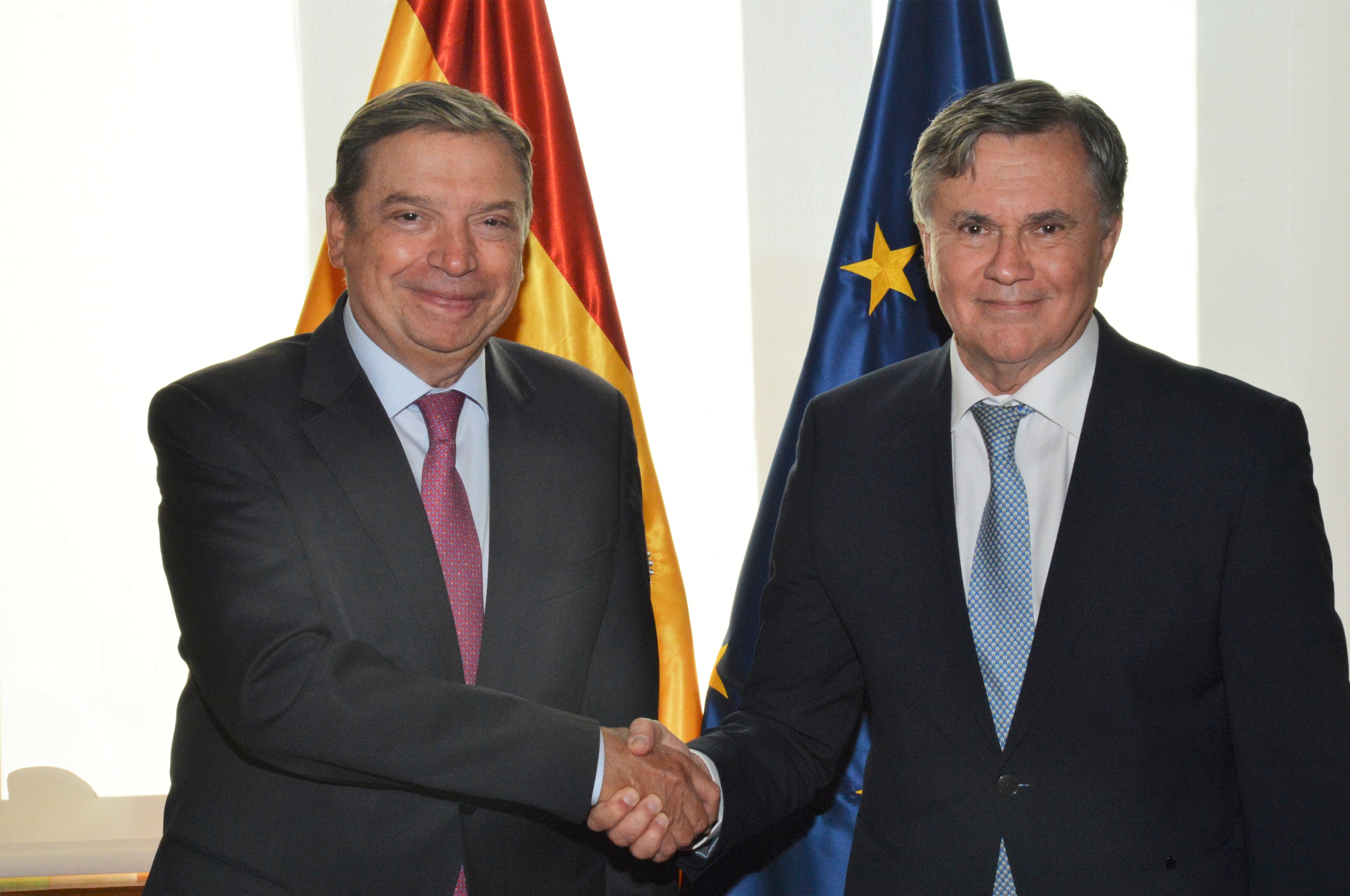 El ministro de Agricultura, Pesca y Alimentación, Luis Planas, se ha reunido hoy con el director general del Instituto Interamericano de Cooperación para la Agricultura (IICA), Manuel Otero, para tratar asuntos de interés común en el ámbito agroalimentario. El encuentro se produce en el marco de los actos organizados por este organismo en homenaje a los ocho años de mandato de Otero, que cumplido este periodo va a cesar en el puesto. Planas ha valorado la estrecha colaboración que existe entre el ministerio y el IICA, que se manifiesta, entre otras actuaciones, en iniciativas conjuntas y exitosas relacionadas con el uso adecuado de los suelos, su salud y el medioambiente. El ministerio considera fundamental la relación con Iberoamérica, especialmente en cuestiones relacionadas con la gestión de los riesgos -a través fundamentalmente de los seguros agrarios-, el uso del agua en agricultura, el asociacionismo agrario y la cadena alimentaria. Planas ha recordado que la ratificación del acuerdo entre la Unión Europea y Mercosur está cada vez más cerca y supondrá incrementar la presencia de los productos agroalimentarios españoles en los mercados de los cuatro países de Mercosur (Argentina, Brasil, Paraguay y Uruguay), además de una gran oportunidad para seguir impulsando el comercio equilibrado entre ambos bloques. El IICA fue fundado en 1942 y pertenece a la Organización de Estados Americanos (OEA). Su misión es contribuir a la mejora de la productividad agrícola y el bienestar rural del continente americano. Lo forman 34 Estados miembros y 19 observadores. España se unió en 1975 como observador y en 2001 pasó a ser el único país con la condición de Estado Asociado del IICA y alberga la Oficina Permanente para Europa, que actualmente está en el edificio del ministerio.