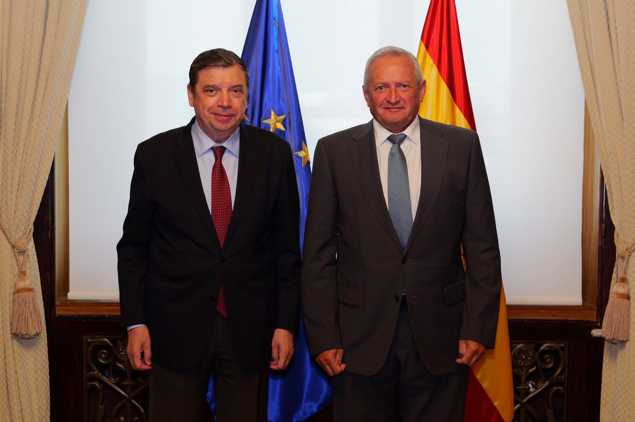 El ministro de Agricultura, Pesca y Alimentación, Luis Planas, se ha reunido hoy con el presidente de Cooperativas Agro-alimentarias de España, Ángel Villafranca, encuentro que refleja el compromiso de ambas partes por fortalecer la cooperación y promover el desarrollo del sector.