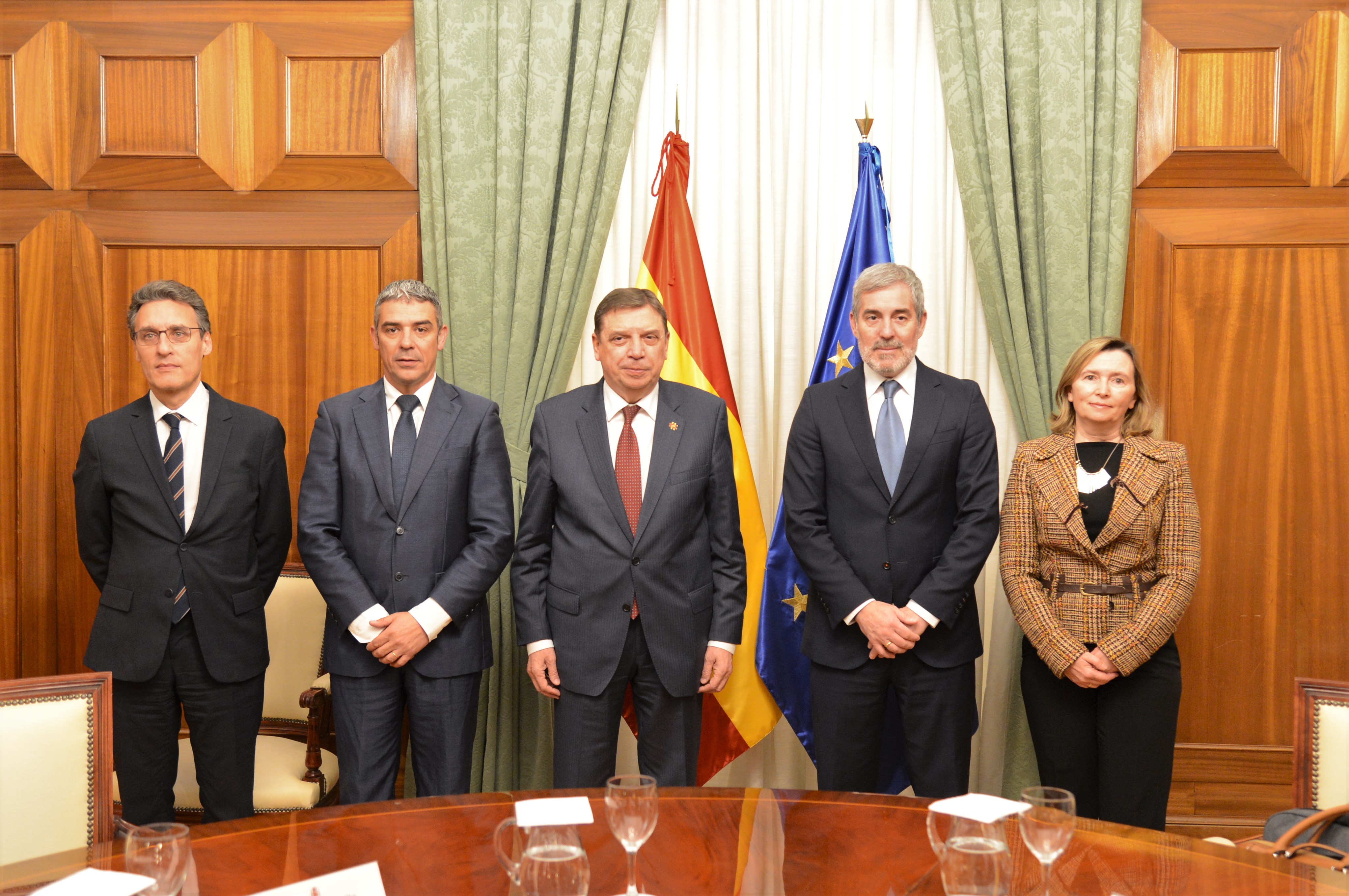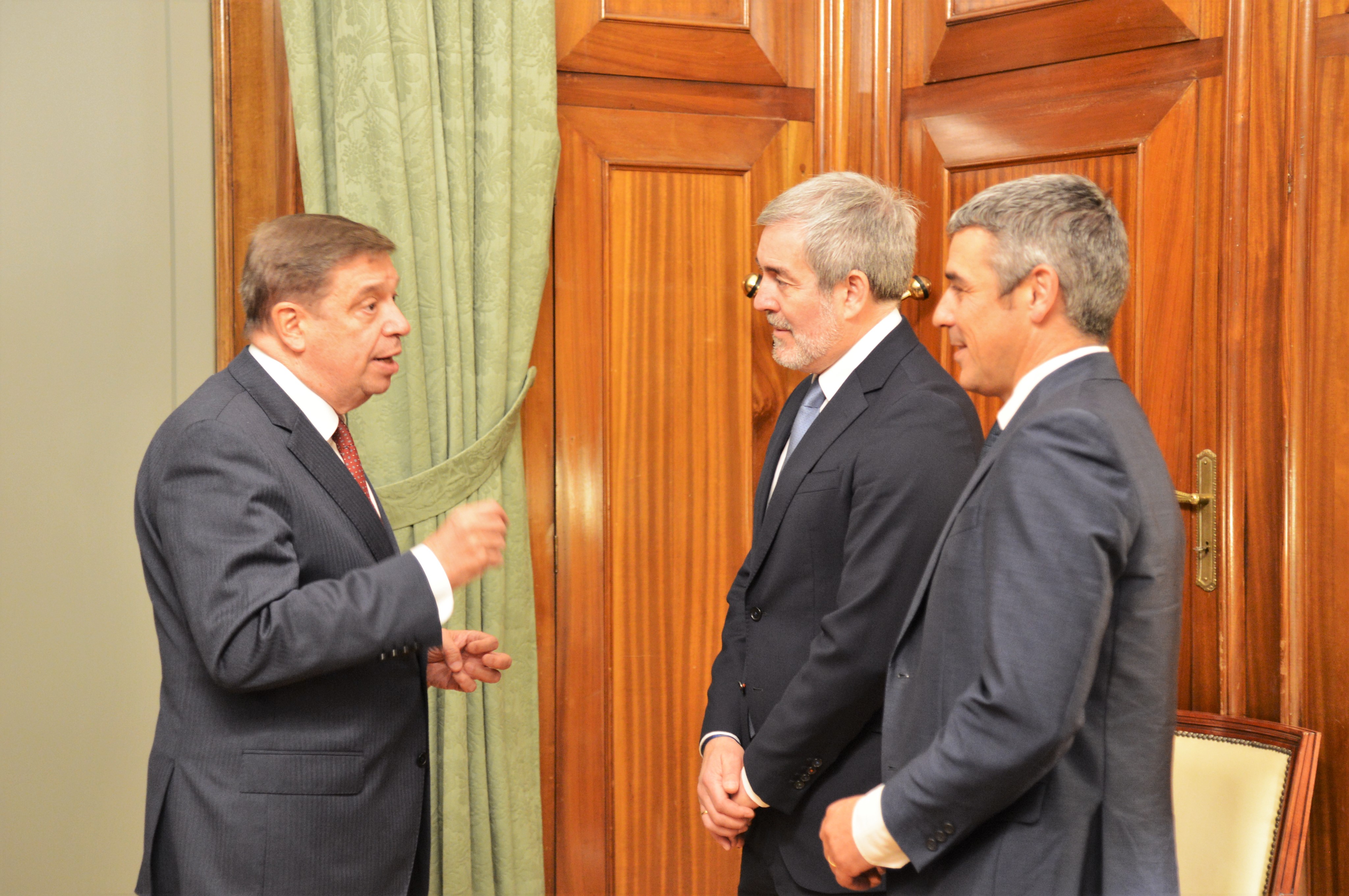 El ministro de Agricultura, Pesca y Alimentación, Luis Planas, se ha reunido hoy con el presidente del Gobierno de Canarias, Fernando Clavijo, y con el consejero de Agricultura, Ganadería, Pesca y Soberanía Alimentaria, Narvay Quintero, con quienes ha analizado los principales temas de interés para el sector agroalimentario y pesquero de las Islas Canarias.