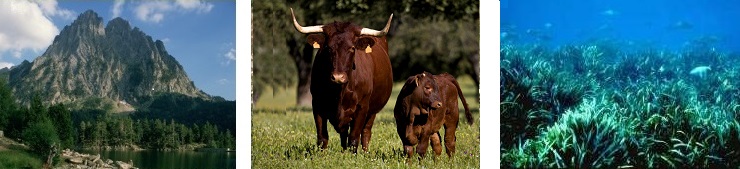 Foto 1: Parque Nacional de Aigüestortes i Estany Sant Maurici. Autor: J.M. Reyero/Fototeca CENEAM.<br/>Foto 2: Raza retinta.<br/>Foto 3: Fondos...