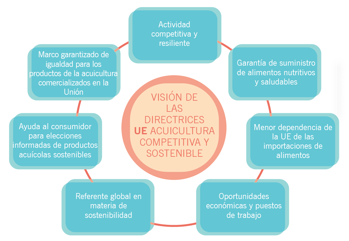 Las Directrices estratégicas para una acuicultura de la UE más sostenible y competitiva para el período 2021-2030, tienen por objetivo ofrecer a los Estados miembros de la UE y a todas las partes interesadas una visión común enfocada a un mayor desarrollo de la acuicultura en la Unión, de modo que contribuya a la consecución del Pacto Verde Europeo.
